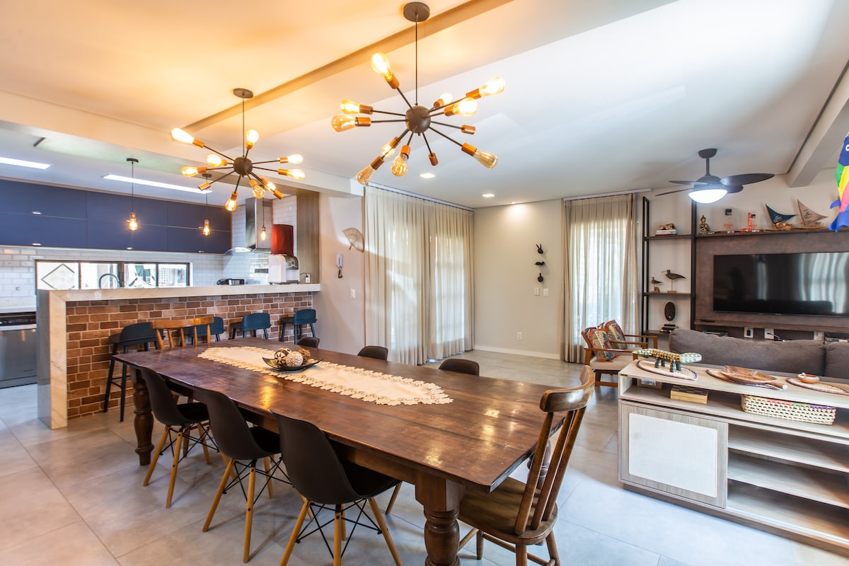 ¡Casa Vivare fue diseñada y hecha con gran fantasía para que te sientas como en casa posible! Tenemos 3 suites equipadas con sábanas , toallas , ventiladores, armarios. Amplia sala de estar con baño , sofá , mesa de comedor, televisión, internet , Netflix. Un balcón gourmet de 80 metros cuadrados con barbacoa y una mesa para 10 personas. Para tu ocio, tenemos una piscina grande, cancha de tenis de playa, un gran jardín para jugar , mesa de ajedrez, garaje para 10 coches . Tenemos un huerto en el jardín .