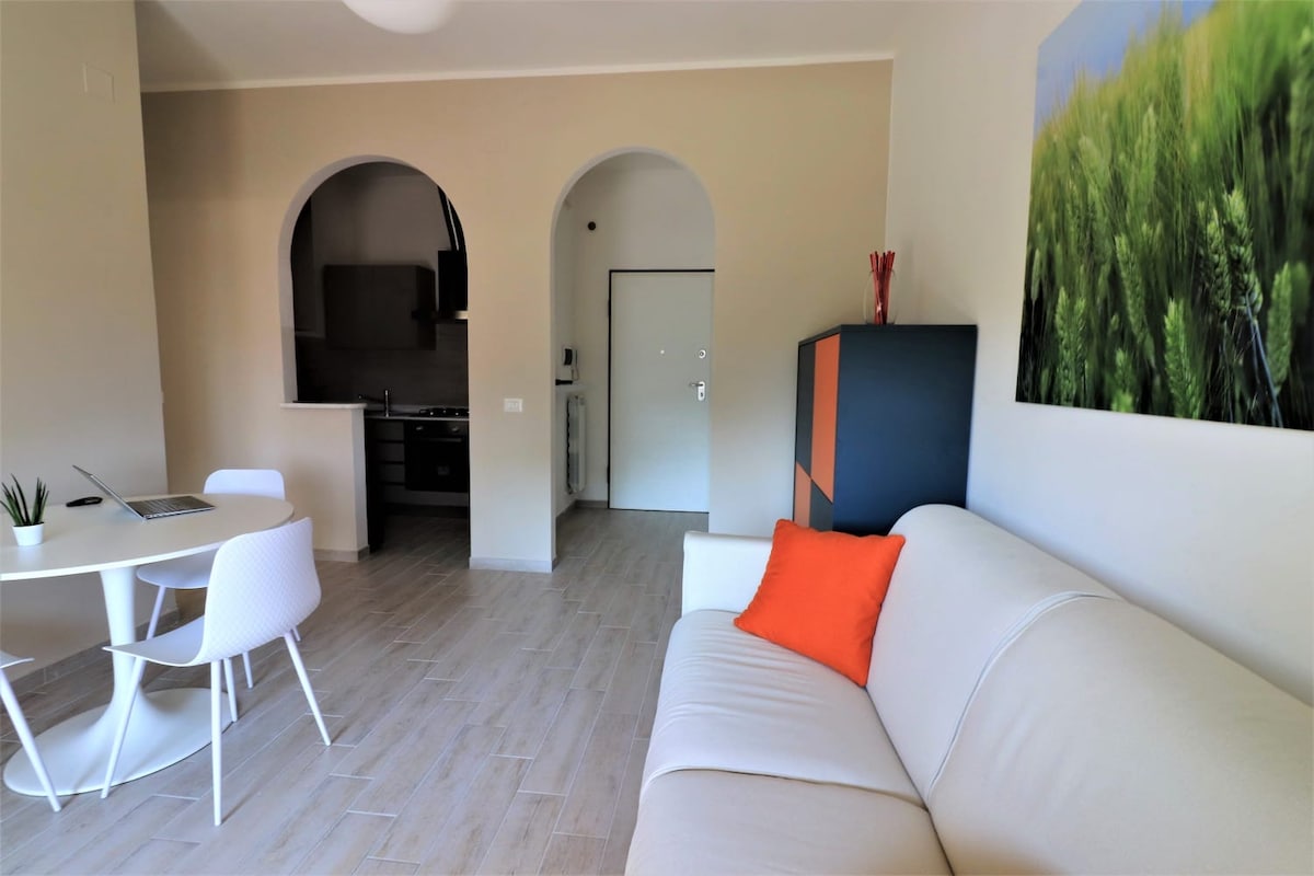 Bilocale luminoso con vista, nuovo, silenzioso, accogliente, 3° piano con ascensore, WIFI superveloce, climatizzatore in ogni stanza. Stazione dei Treni a 650 metri. Selezione Marina Militare a poche centinaia di metri (raggiungibile a piedi). Zona servitissima. Supermercato sotto casa. A due passi Stazione Bus per ogni direzione.