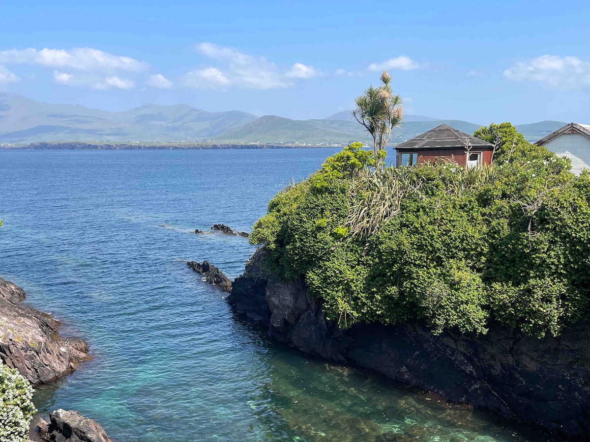 Estamos situados en la península de Beara, justo al final de la carretera desde el bar de Helen en Kilmackilogue. Nuestra cabaña de pastores llamada The Bothy, con vistas al mar, y a tres minutos a pie de la playa. Disfruta de la naturaleza en todo su esplendor con vistas a la bahía de Kenmare y sus montañas circundantes. Es un paraíso para los excursionistas, situado justo al lado de «The Beara Way». Los ciclistas también estarán en su elemento con The Healy Pass a pocos kilómetros de distancia. Kenmare está a media hora con maravillosas tiendas y restaurantes.