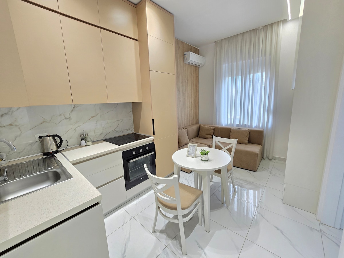 Olive Studio Apartments es un estudio recientemente renovado y elegantemente diseñado que ofrece un refugio acogedor y elegante en Tirana. Con un interior luminoso, una cómoda zona de dormitorio, una cocina pequeña funcional y comodidades modernas, es ideal para estancias cortas y largas. El ambiente acogedor garantiza relajación y comodidad, mientras que su ubicación cerca del vibrante distrito de "Blloku" te mantiene cerca de los restaurantes, tiendas y lugares de interés cultural de la ciudad.