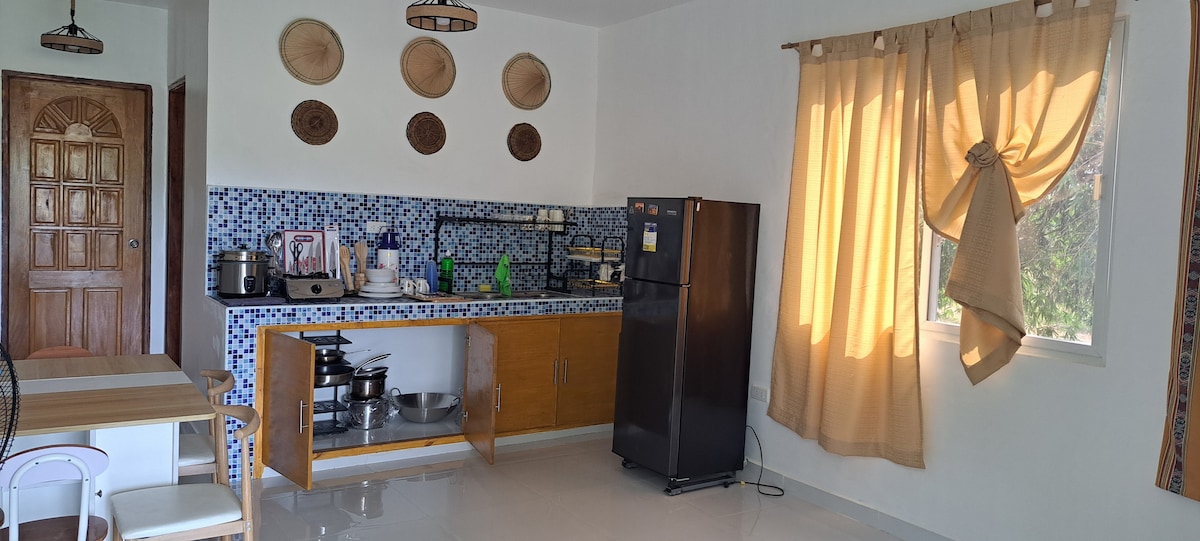 Disfruta de estar cerca de Hundred Islands, además de: ✅ 3 dormitorios, cama tamaño queen cada uno ✅ 3 aire acondicionado de tipo dividido (1 por dormitorio), incluidas mantas y almohadas ✅ 1 baño ✅ 1 baño con bidé. Cocina ✅ completa, encimera de la isla ✅ Microondas ✅ Refrigerador ✅ Tostadora Agua ✅ mineral (500 ml de cortesía) ✅ Arrocera ✅ Pava eléctrica ✅ Estufa ✅ Utensilios básicos ✅ Mesa de comedor ✅ Parrilla exterior. Mobiliario ✅ de madera Ventilador ✅ eléctrico. Televisión ✅ inteligente (50 pulgadas), Wi-Fi ✅ rápido Estacionamiento ✅ enorme. ✅ Hamacas