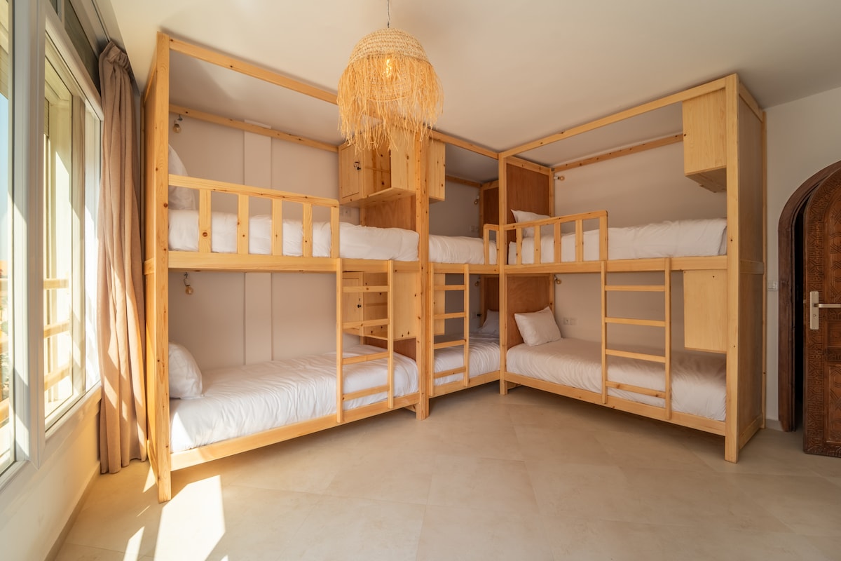 Dormitorio compartido – Chiwash Place Hostel, Taghazout Nuestro dormitorio compartido es ideal para voluntarios que trabajan con nosotros y los inquilinos que buscan una estancia asequible. Con espacio para un máximo de 5 personas, ofrece un entorno acogedor y vibrante inspirado en el ambiente de surf y mar de Taghazout. Conéctate con viajeros con ideas afines en este espacio orientado a la comunidad, perfecto para trabajar, descansar y disfrutar del estilo de vida del surf. Ya sea que estés aquí para ayudar o alquilar, Chiwash Place es tu hogar para una experiencia inolvidable en Taghazout