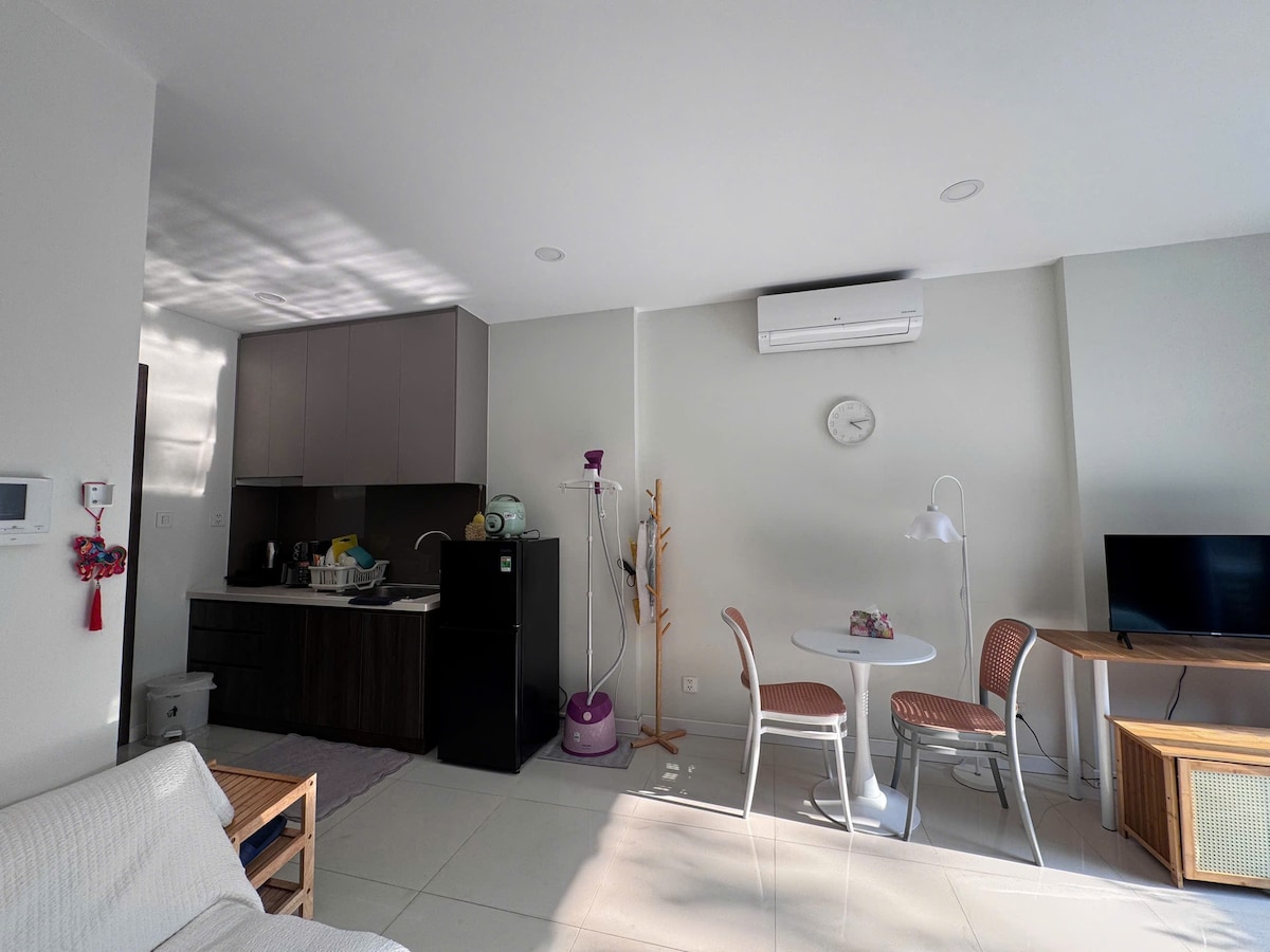 Estudio limpio y privado en el Distrito 7, perfecto para estadías cortas o largas. Situada en La Vida Plus (Nguyen Van Linh), cerca de Korean Town y Phu My Hung. Cuenta con una cama cómoda, cocina totalmente equipada y Netflix. Iluminado y espacioso, con una vista interior tranquila. Los huéspedes pueden acceder a la piscina y a las instalaciones compartidas. Cerca de la carretera principal, puede haber algo de ruido.