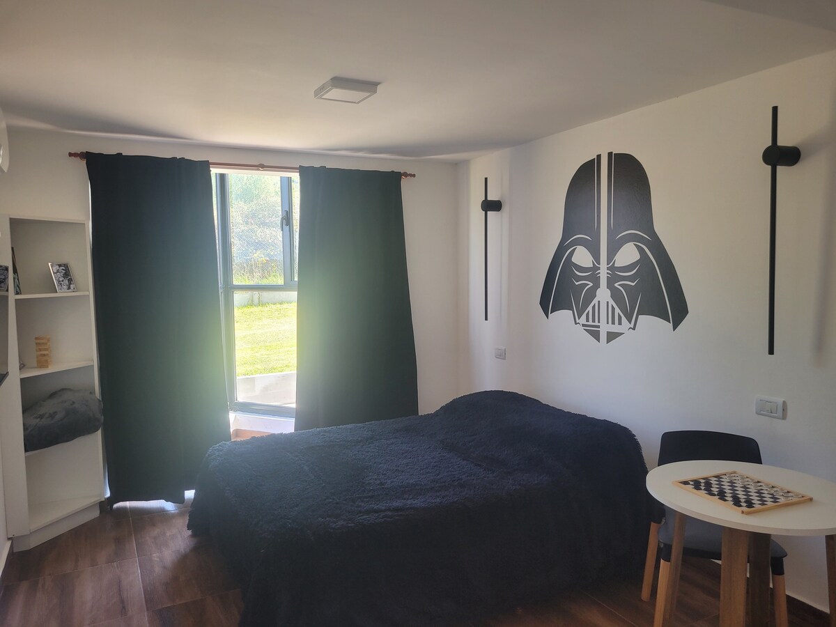 Veni a disfrutar del complejo de dormís, que ofrece una propuesta distinguida ya que cada uno de ellos presenta un interiorismo y temática diferente: Star Wars, Harry Potter y Alicia en el país de las Maravillas. Su ubicación privilegiada te permitirá alojarte en un entorno natural con vistas a las sierras. Fácil acceso a paseos turísticos y propuestas gastronómicas. A 7 minutos del centro en auto. El quincho y fogón te permitirá relajar y divertirte compartiendo esta experiencia única