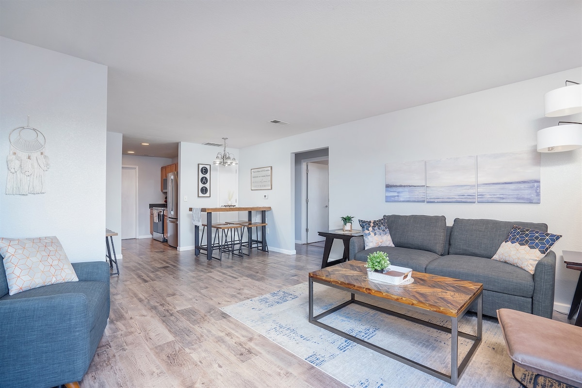 ¡Siéntete como en casa! --- Envíanos un mensaje y pregunta sobre nuestras opciones de llegada anticipada/salida después de la hora establecida. --- ¡NUEVA ALFOMBRA instalada en enero de 2026! ¡Echa un vistazo a nuestras excelentes reseñas! ¡Favorito de los huéspedes! Disfruta de esta acogedora unidad de 1 dormitorio para relajarte después de un largo día de diversión. El patio es perfecto para tomar el café por la mañana o relajarse por la noche. Hay terrenos regulares de Folgers/ tazas K y descafeinado disponibles, también se proporcionan paquetes de crema y azúcar.