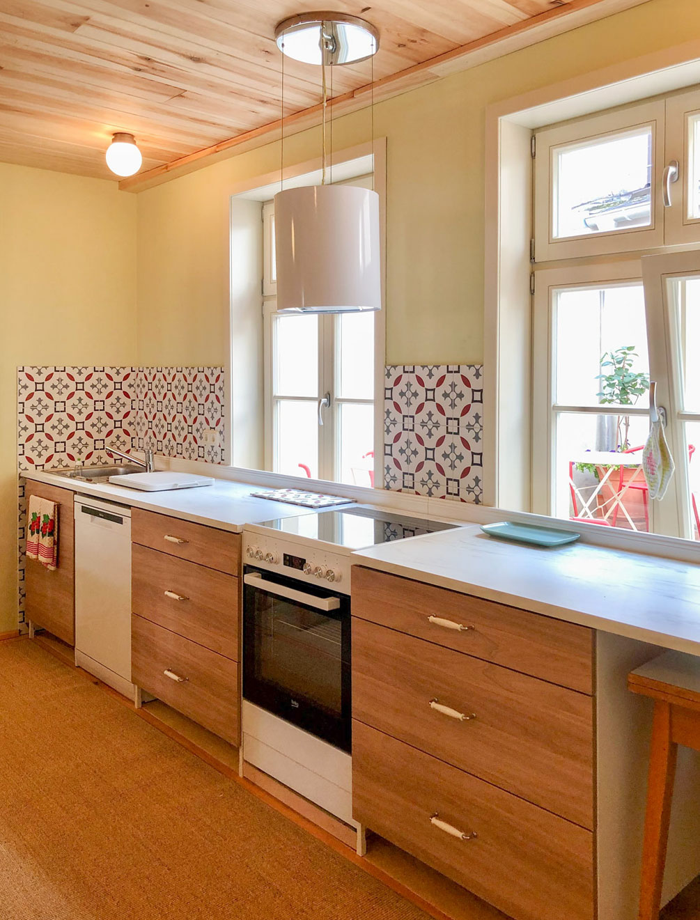 Donde la munición de la persiana producida en la torre solía almacenarse y venderse, hemos desarrollado una ruina vacía de 30 años con materiales de construcción naturales y una mezcla inspirada de antigua y nueva a nuestra generosa casa favorita de monedas de tango. Te esperan cinco habitaciones dobles, una gran cocina: sala de estar y dos baños. Tres de las habitaciones también tienen inodoro interno y ducha, bañera o lavabo.