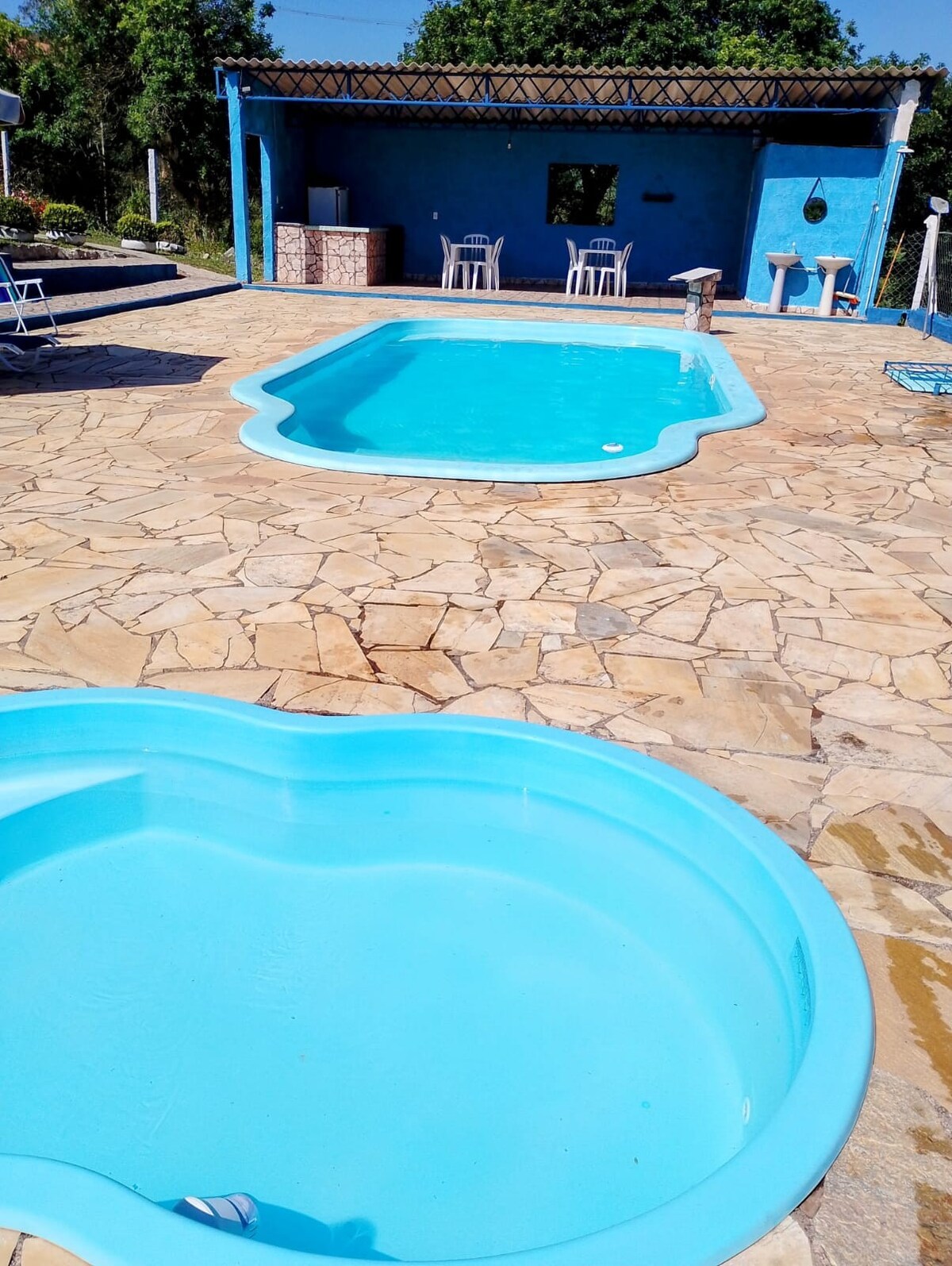 Ven a crear recuerdos inolvidables con familiares y amigos. ¡Hermosa granja! Casa principal con 4 baños en suite, área de TV, wifi, cocina, comedor, bar con mesa de billar, juegos de cartas, barbacoa segunda casa: 2 dormitorios y un baño. Amplia piscina, balcones, área verde de 8000 metros, 2 lagos. Tiene capacidad para que duerman 28 personas. Lar do Torrada, un dóberman muy amable y amistoso que estará encantado de recibir a tus mascotas... Buena ubicación, 150 m de asfalto. Cerca de tiendas locales.