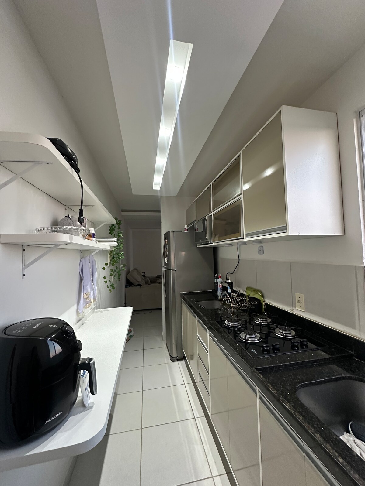 Un alojamiento compacto con todos los utensilios necesarios. El condominio tiene una piscina, gimnasio, seguridad las 24 horas y un mercado de autoservicio las 24 horas. Junto a supermercados, panadería, terminal de autobuses, salón de belleza, centro comercial Via Norte y hospital Delphina Aziz y a 10 minutos del aeropuerto internacional de Manaos. Tiene 2 dormitorios, 1 dormitorio con cama doble y 1 dormitorio con 2 camas individuales, conexión Wi-Fi y estacionamiento gratuito. ¡Comodidad y practicidad para una estancia inolvidable!