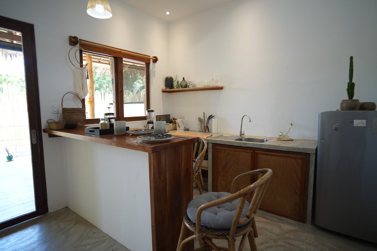 Bienvenido a tu maravilloso refugio en El Nido, Ananda House. Cada casa ofrece una mezcla de vida interior y exterior. En el interior, encontrarás una sala de estar de diseño abierto y una cocina totalmente equipada, un dormitorio con aire acondicionado con una cama tamaño king y cortinas opacas, y un baño privado con un jardín interior. Sal a tu propia piscina privada, rodeada de exuberante vegetación. Nuestras casas funcionan con energía solar, una característica pensada para los frecuentes cortes de energía de la isla.