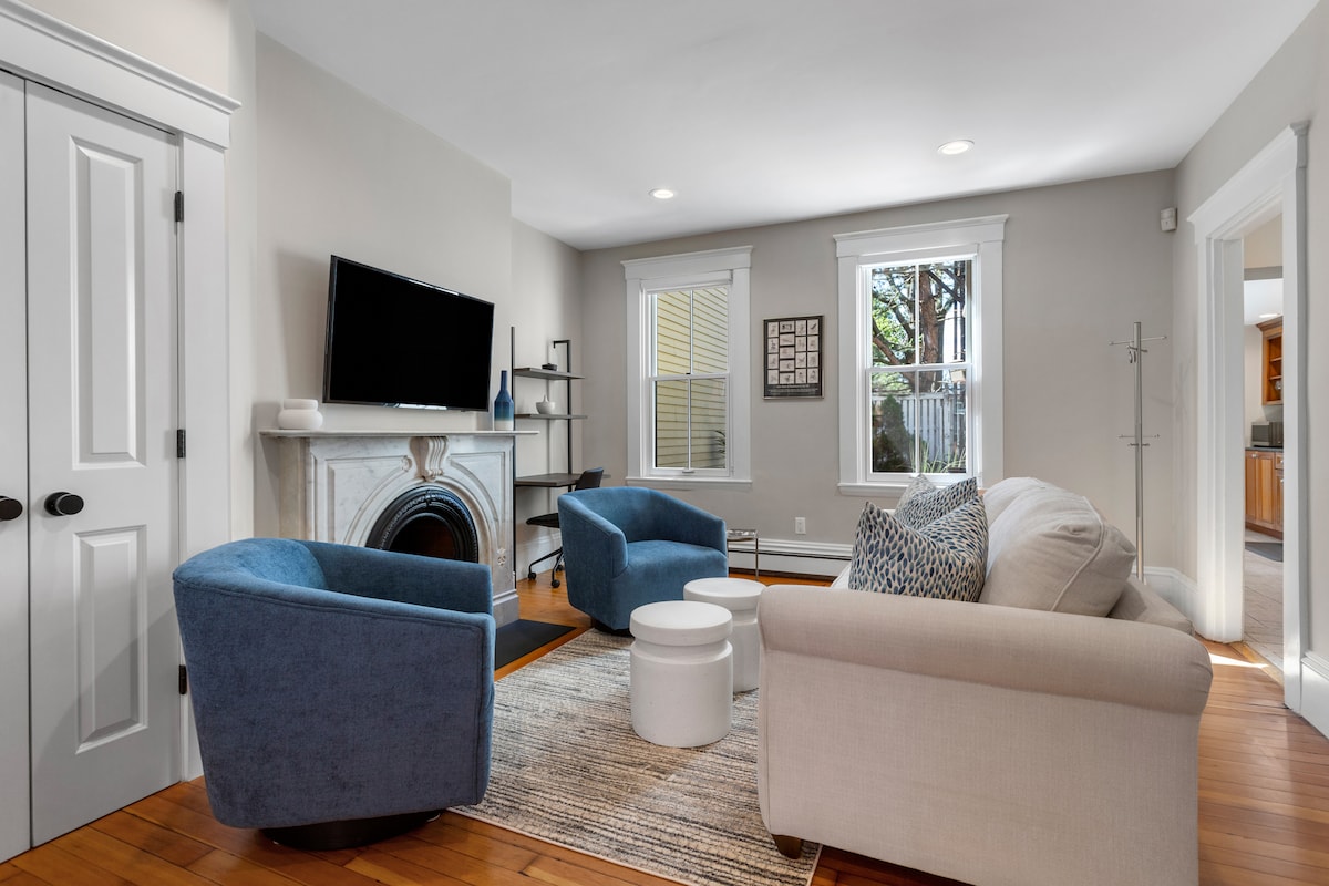 Destacado en la Guía de Diseño de Boston. Lujoso apartamento en planta completa en el histórico y encantador barrio de Gaslight de la sección de Charlestown de Boston. A pocos pasos del monumento Bunker Hill y a 1,5 millas del casino Encore. Cocina a estrenar con acabados de cobre de alta gama y electrodomésticos nuevos. Smart TV HD con aplicaciones de películas y streaming. Colchón de espuma viscoelástica tamaño queen, vestidor, cómodo sofá cama, baño completo con ducha de pie recién alicatada, lavadora/secadora y servicios similares a los de un hotel (champú, jabón, etc.).