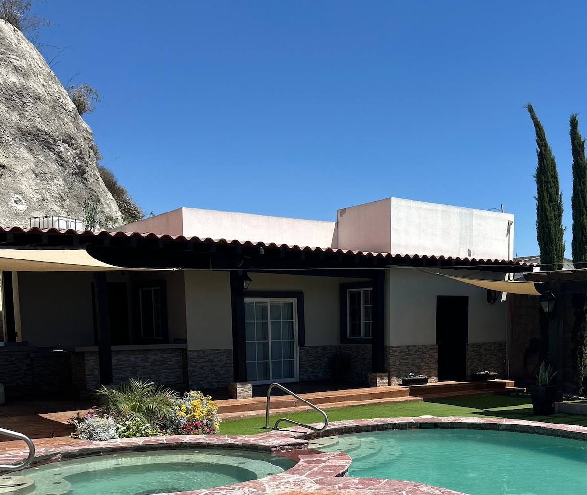 Este alojamiento único tiene mucho espacio para que disfrutes con los tuyos, en la mejor comodidad y privacidad. Ubicada a tan solo 8 min de la línea fronteriza, a 5 min de la carretera libre Tecate-Tijuana, 7 min del bello centro de la ciudad, en cercanía de los mejores restaurantes de la ciudad y zona de bares, es tu mejor opción para hospedarte en tu próxima visita a Tecate.