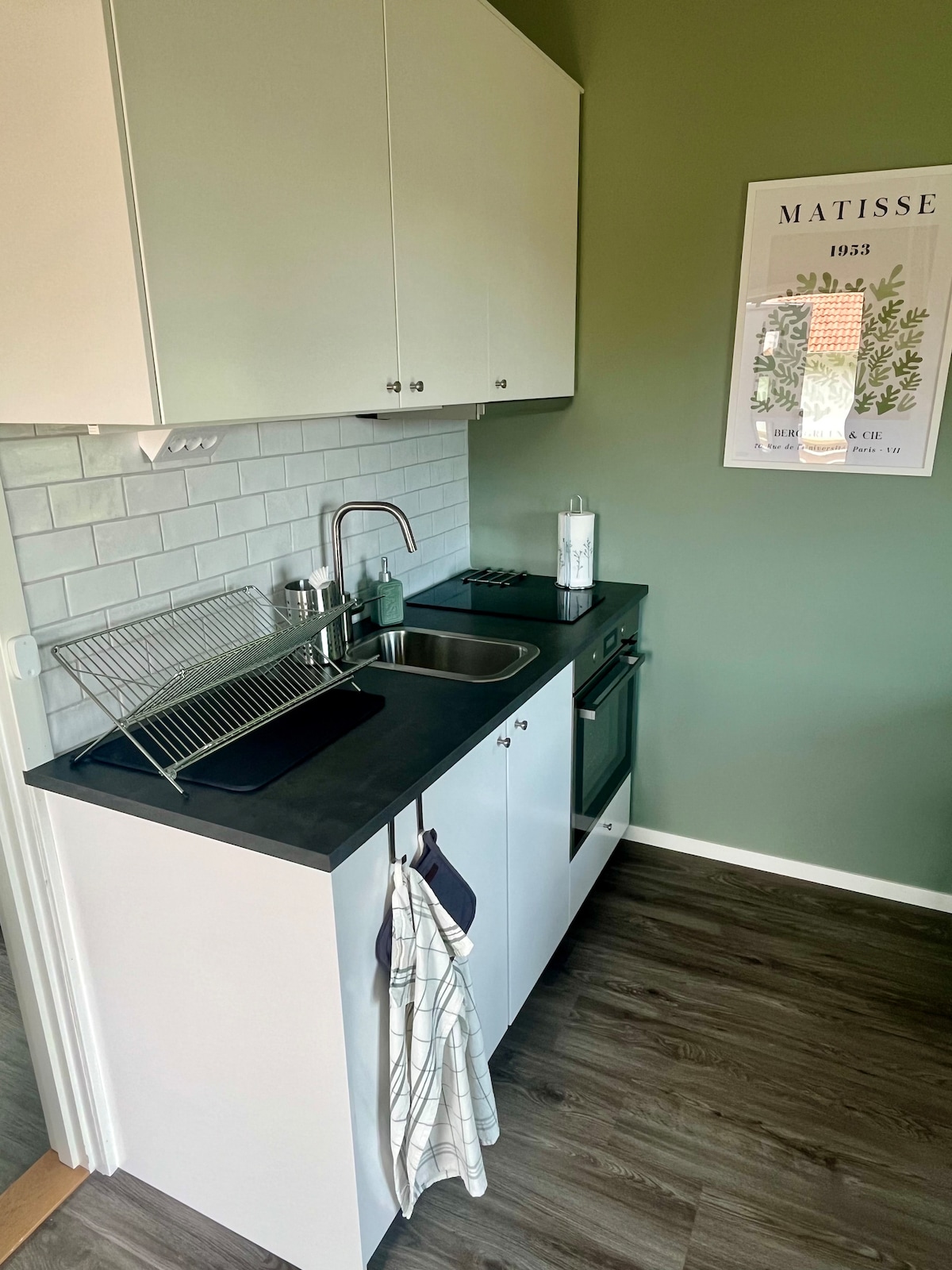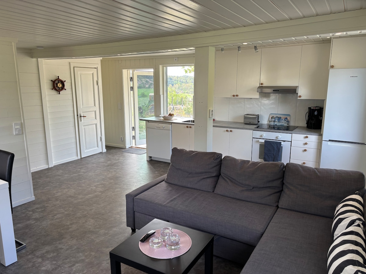 Bienvenido a Slotteberget 9. Alojamiento luminoso y agradable con impresionantes vistas al mar abierto. La casa tiene 54 metros cuadrados con un dormitorio separado y literas junto a la entrada. En la planta superior hay una cocina totalmente equipada con fogones, horno, microondas y lavavajillas. El plano es abierto, con sofá, TV y zona de comedor para 6-8 personas. Lavadora y congelador adicional disponibles en el garaje que está pared con pared con el apartamento. Hay aparcamiento junto a la casa. Ubicación de la casa de huéspedes, ver plano. Grupo de jardín privado.