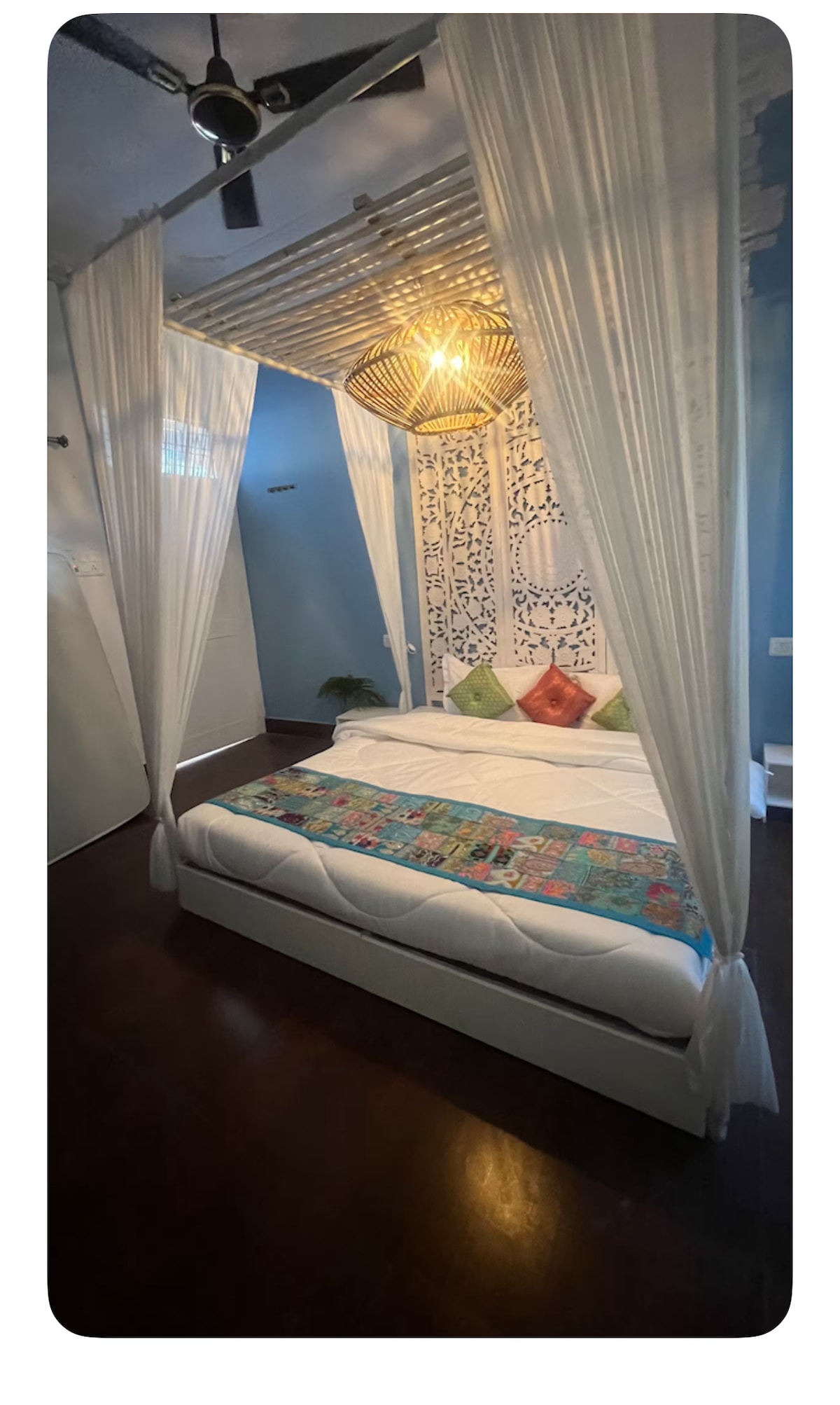 Escondido en las serenas callejuelas de Nirmal Bagh, Rishikesh, The Calm Kinara de PookieStays ofrece una escapada tranquila a solo unos pasos del río. Despiértate con las vistas doradas de las montañas, la suave luz del sol que se vierte a través de las ventanas de vidrio y el zumbido tranquilo de la naturaleza a tu alrededor. Ya sea que estés aquí para trabajar, relajarte o simplemente respirar, este espacio te invita a relajarte y quedarte un rato. El tranquilo Kinara es más que una estadía. Es tu botón de pausa en las montañas: cálido, tranquilo e inolvidable.