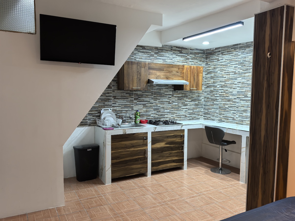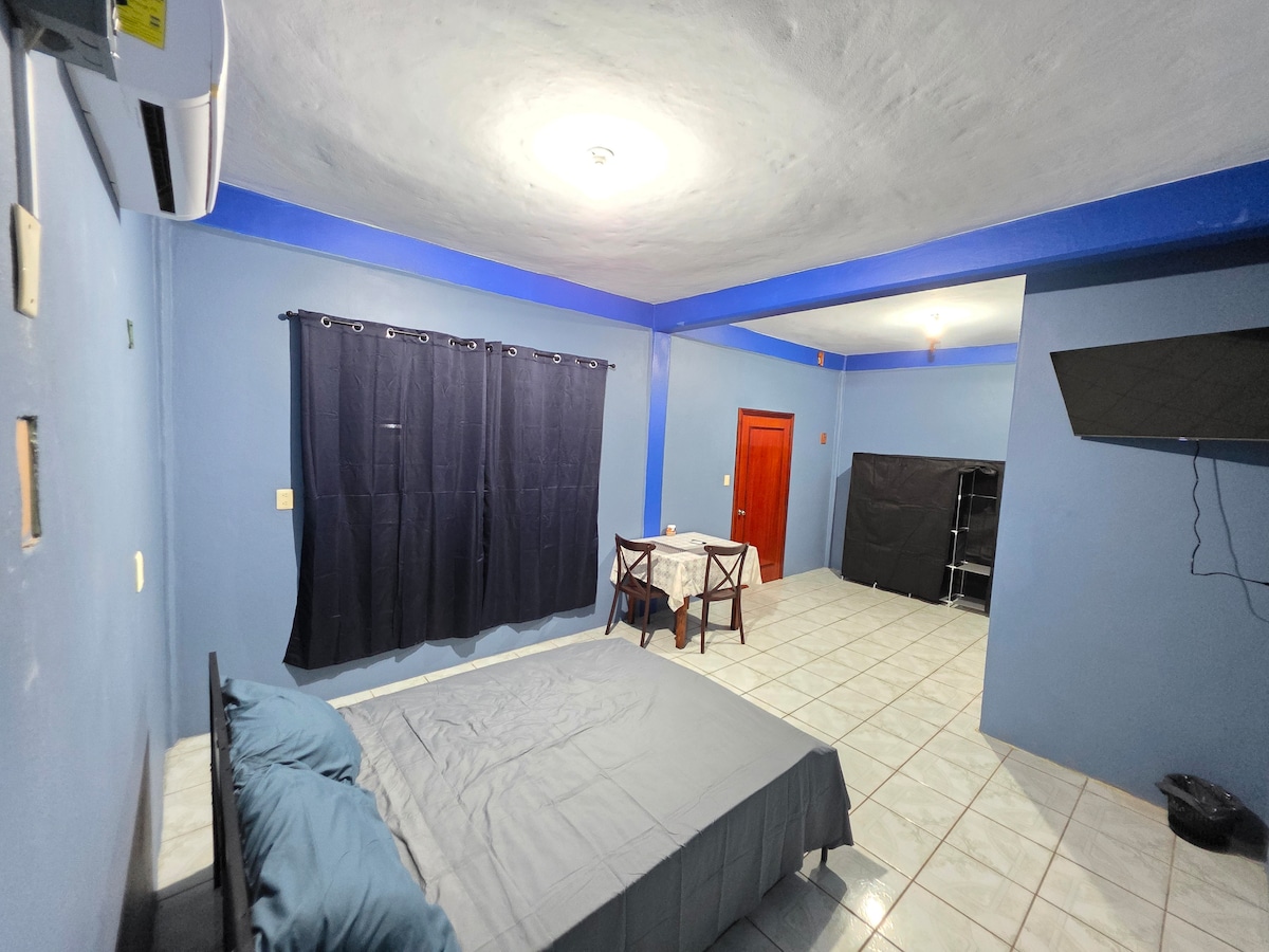 Disfruta de la comodidad de este alojamiento tranquilo e independiente, con terraza, ubicado en la avenida principal, cerca del seguro social, tiendas de conveniencia y farmacias. Con fácil acceso a transporte público. Cuenta con: Baño propio en el interior Cama matrimonial Aire Acondicionado Mesa confortable con 2 sillas Barra de cocina Closet TV Estufa de inducción Microondas Cafetera Utensilios de cocina Wifi Estacionamiento dentro de la propiedad o sobre avenida principal.
