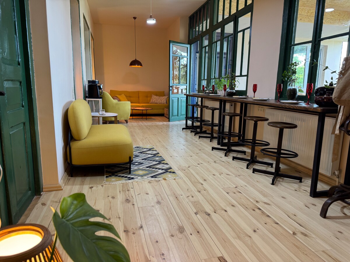 Encantadora casa rústica en el corazón de Telavi, recién renovada pero llena de carácter. Disfruta de mañanas tranquilas en la terraza cubierta de vid y de noches tranquilas en una acogedora y auténtica casa georgiana. A pocos pasos de cafeterías, mercados y lugares de interés histórico, es la base perfecta para explorar la región vinícola de Kakheti. Las vigas de madera originales y las comodidades modernas lo convierten en una estancia relajante e inolvidable.