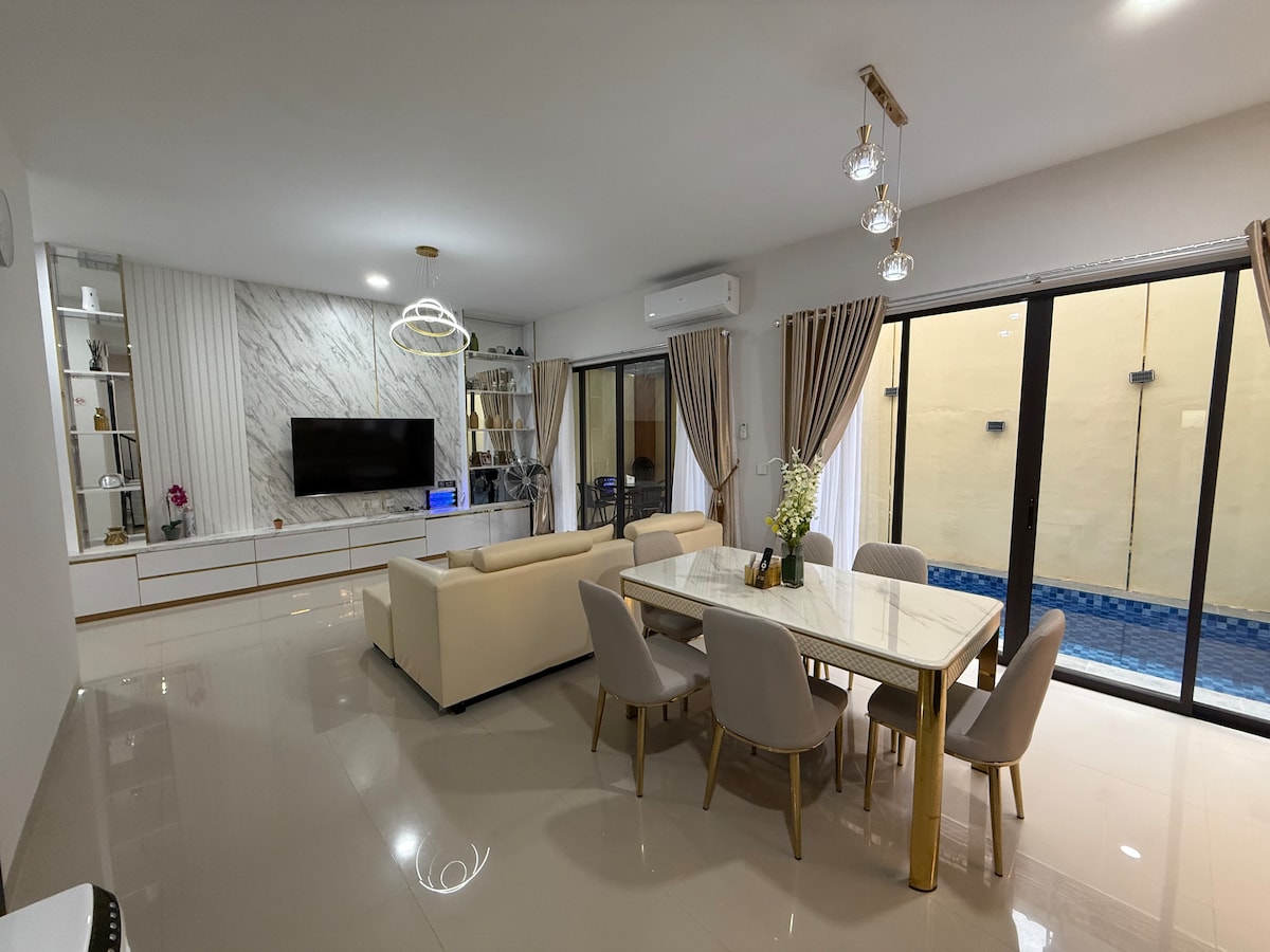 Disfruta y relájate en nuestra villa privada con vista al mar n.º 61 B con aire acondicionado completo en la sala de estar Solo te llevará 30 minutos desde Singapur. Aire acondicionado en el interior , TV inteligente de 55 pulgadas en Netflik en la sala de estar, wifi gratuito, puerta de cerradura inteligente con llegada privada. A poca distancia a pie de la piscina y la zona de playa. Disfruta de una hermosa puesta de sol en la villa Superanfitrión Balcony. deportes acuáticos ,SPA, cerca del restaurante del hotel, bar y billar. Recomendación para familias y amigos , parejas , grupos de remo y ciclismo son bienvenidos.