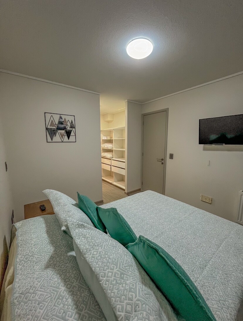 Tu segundo hogar a pasos del Patio Outlet. Disfruta de este acogedor departamento de 2 dormitorios, con capacidad para 4 personas, ideal para familias, amigos o parejas que visitan la region. Está totalmente equipado para que sólo te preocupes de disfrutar tu estadía. El espacio... 2 dormitorios con 3 camas (1 matrimonial + 2 individuales) Estacionamiento 1 baño completo Living comedor con sofá y TV Cocina full equipada Terraza Calefacción Wifi Lavadora y logia, perfecto para estadías.