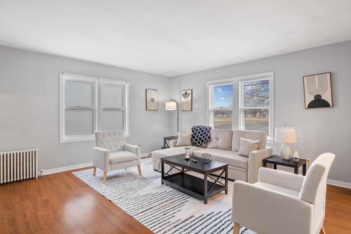 Welcome to this charming first-floor apartment, ideal for short stays or extended stays. It features two inviting bedrooms, a full bathroom, and a fully equipped kitchen for all your culinary needs. The living space is comfortably furnished, complete with high-speed Wi-Fi, a stackable washer and dryer, and a workspace for your convenience. Plus, its location near Union Hospital and Indiana State University offers great accessibility and ease.