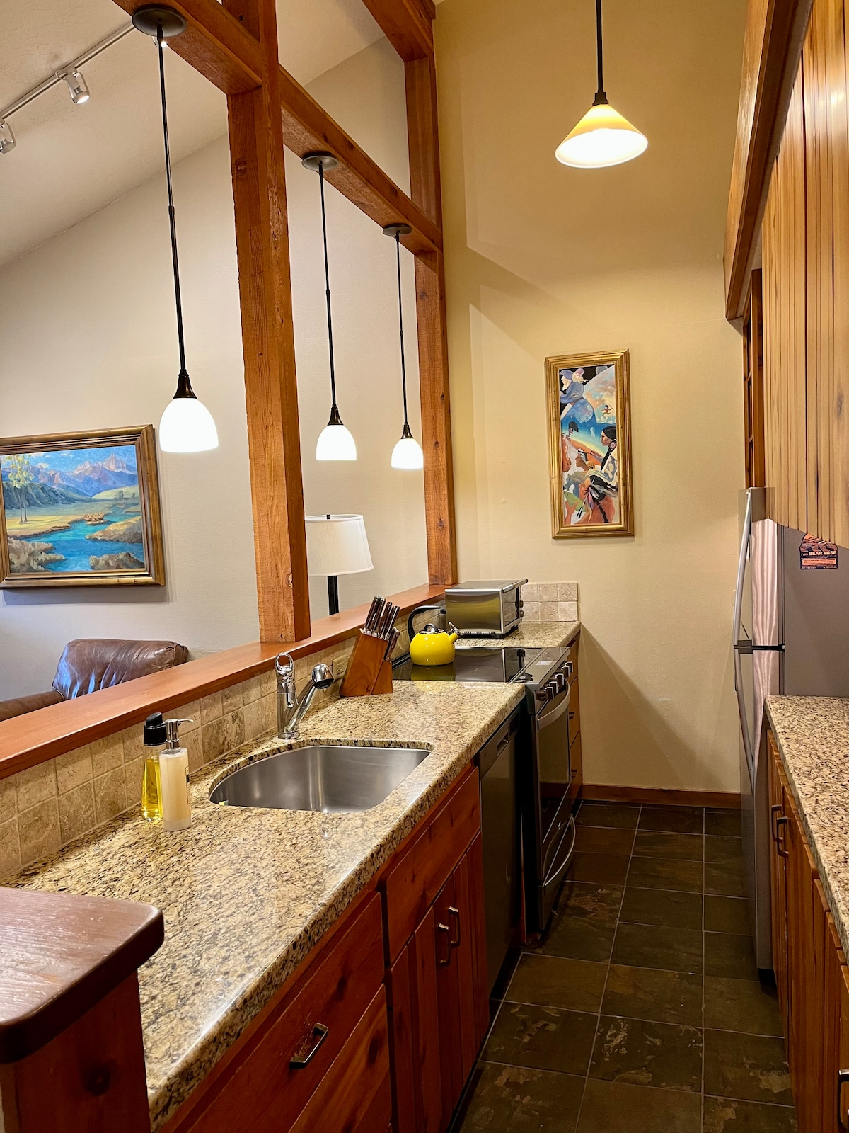 Hermoso apartamento en el barrio de Aspens que ofrece excelentes vistas a las montañas Teton. Disfruta de las vistas de la parte superior del tranvía en la montaña Rendezvous desde la comodidad de tu sala de estar mientras te mantienes caliente frente a una chimenea de leña recientemente remodelada. Una vez que estés listo para salir, estarás a menos de 5 millas de Teton Village y a 8 millas de la ciudad de Jackson.