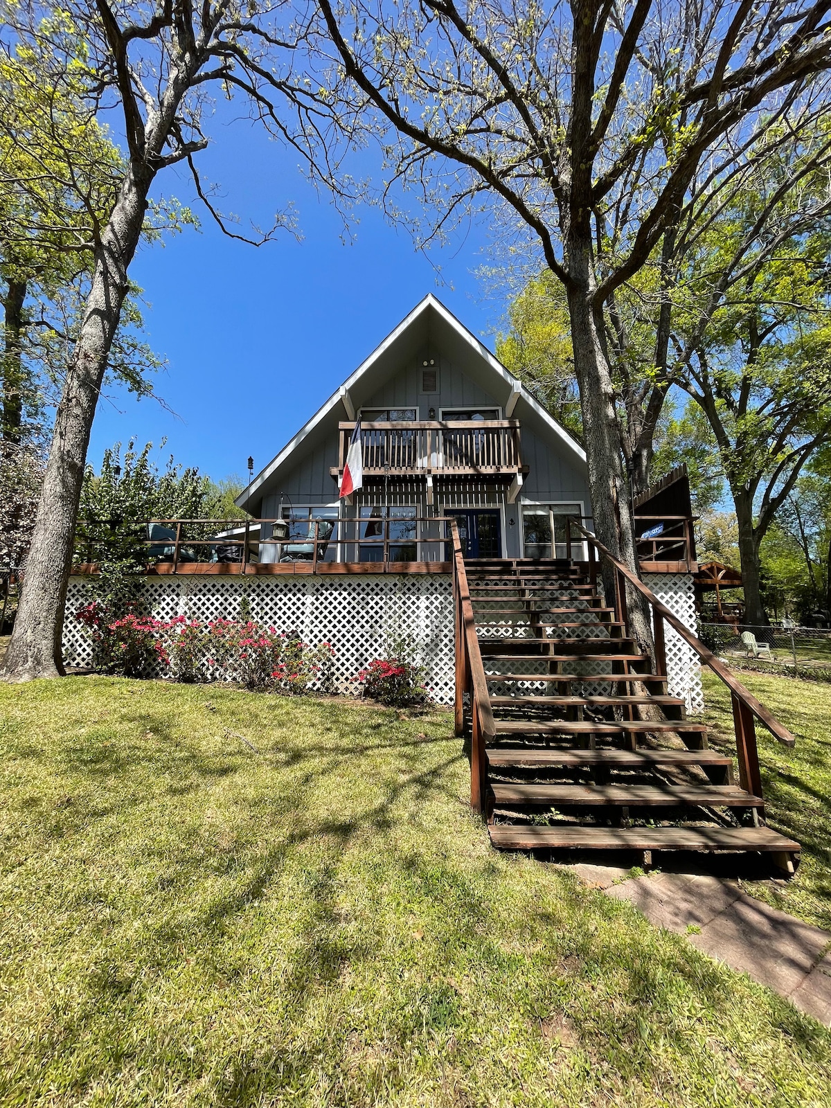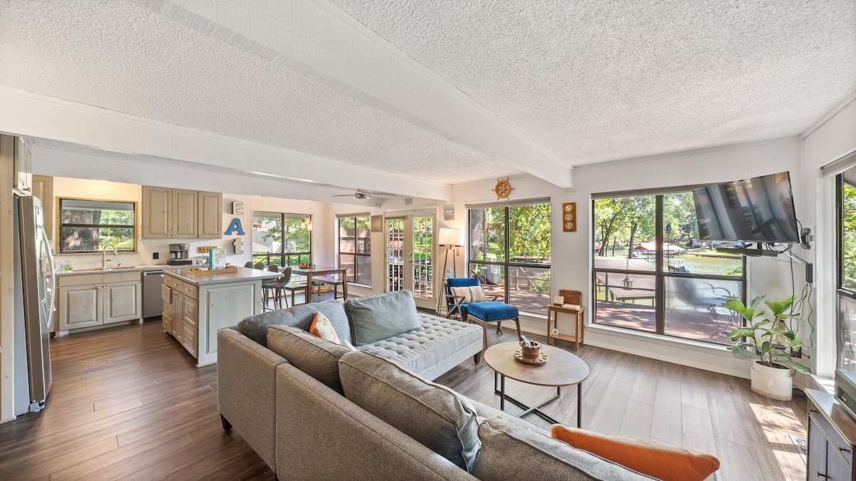 ¡Vive la vida del lago en nuestro chalet de 3 dormitorios y 3 baños con tranquilas vistas al canal en Cedar Creek Lake! Convenientemente ubicado a solo una hora de Dallas, el Cedar Creek Chalet es el escape perfecto para familias que buscan desconectarse, parejas que necesitan una escapada relajante o para los pescadores que buscan hacer cola. ¡La gran terraza de madera tiene las vistas más serenas del canal, chimenea Solo Stove, parrilla de gas y 2 tablas de surf de remo para que disfrutes!