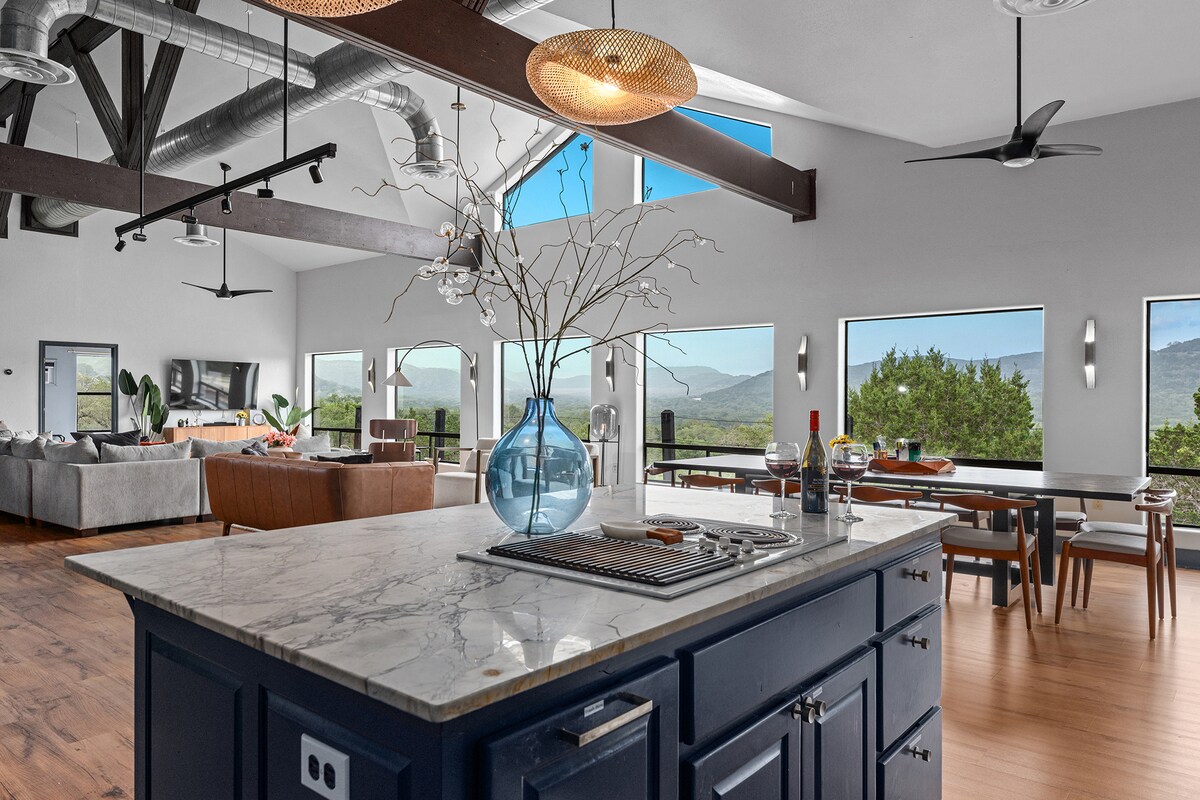 Stop scrolling! Your group just found its next trip: 4 private acres in the Hill Country, sleeping up to 10 across two king suites, 3 baths and four bedrooms. Soak in the swim spa, shoot a game of billiards or darts, shoot hoops outside, gather around the fire pit under open skies, and wake up to sunrises that actually stop you in your tracks. This is an up-level experience on private land. Perfect for reunions, celebrations, and retreats. Come see why guests keep coming back.