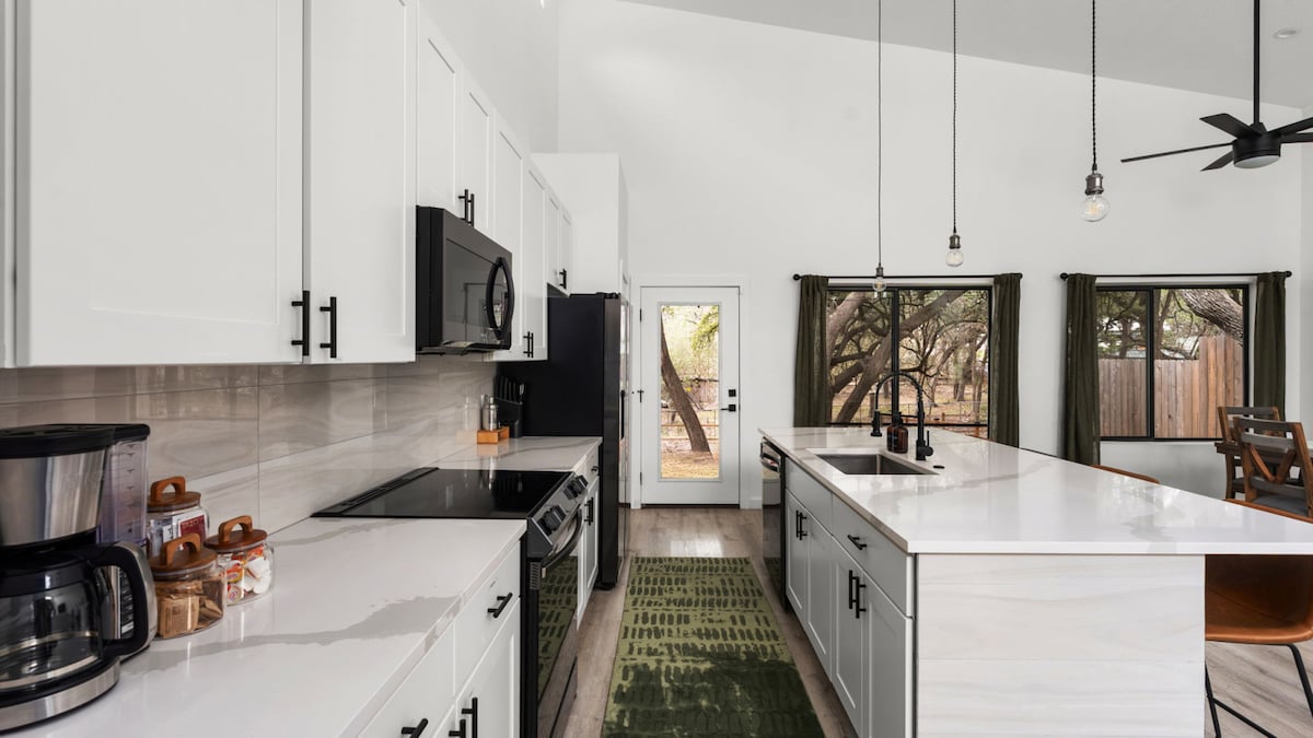 ¡Este alojamiento es el lugar perfecto para unas vacaciones en Texas porque está muy cerca de muchas cosas favoritas que no te puedes perder en Texas Hill Country! Está a menos de 2 minutos del lago, a 15 minutos del río Guadalupe y del anfiteatro Whitewater, y a 30 minutos de Wimberley, New Braunfels y Gruene. Este alojamiento está decorado con una estética moderna y minimalista para ofrecer una estancia de lujo que puede acomodar parejas, grupos grandes y familias. ¡Nuestra parte favorita de este alojamiento son las frecuentes visitas de ciervos que ocurren a diario!