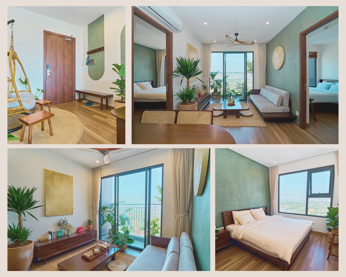 El interior de la casa – Japandi 2BR es un apartamento cálido y bien equilibrado diseñado para huéspedes que planean quedarse más de una o dos noches. Con luz natural, interiores de madera y una estética Japandi tranquila, este espacio está hecho para vivir suavemente, sin apresurarse a entrar y salir. El departamento es especialmente adecuado para parejas, familias pequeñas o profesionales que se alojen durante una semana o más y que valoren la simplicidad, la comodidad y la tranquilidad.