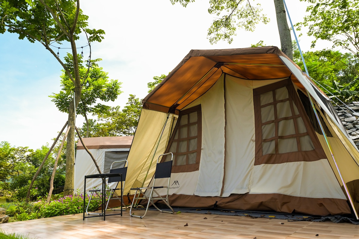 Disfruta de la encantadora vista de este romántico lugar ubicado en medio de la naturaleza. El distrito de glamping de Dream Hill consta de 3 tiendas de campaña. Todas las tiendas de campaña están amuebladas con aire acondicionado fresco, aire acondicionado, luces completas, como un dormitorio real. El área del inodoro dispuesta exclusivamente para el área de Glamping siempre se cuida cuidadosamente y de forma limpia. La cabaña ideal en medio del espacio de la montaña es siempre el lugar que los jóvenes eligen más debido a estos rincones muy bonitos y lindos.
