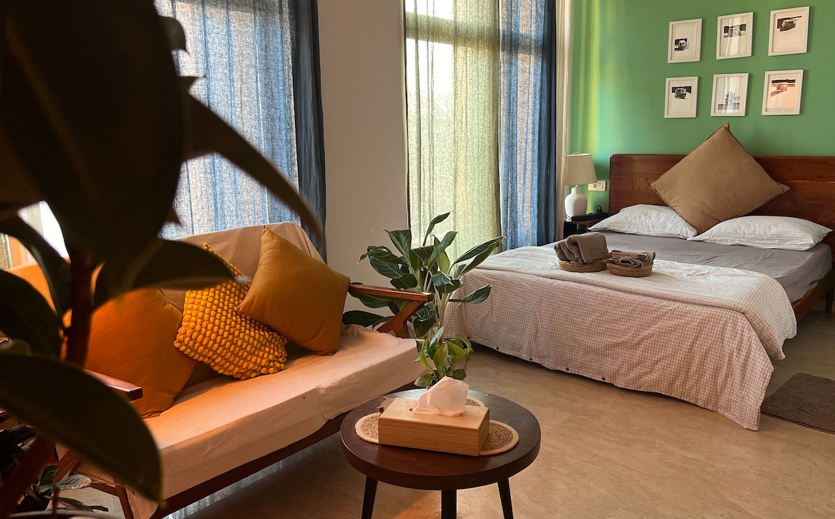 Estudio de lujo con un interior acogedor en la urbanización Hiranandani, con impresionantes vistas al arroyo y a la montaña.Prestaciones • Se admiten parejas • Cama tamaño queen con sábanas y almohadas de lujo • TV inteligente, wifi de alta velocidad y aire acondicionado. • Cocina americana totalmente equipada con nevera, hervidor y utensilios. • Baño moderno con grifería de primera calidad y agua caliente. • Balcón privado con vista panorámica • Seguridad 24/7, ascensores y acceso seguro. Ideal para viajeros solitarios, parejas, huéspedes de negocios o familias pequeñas.
