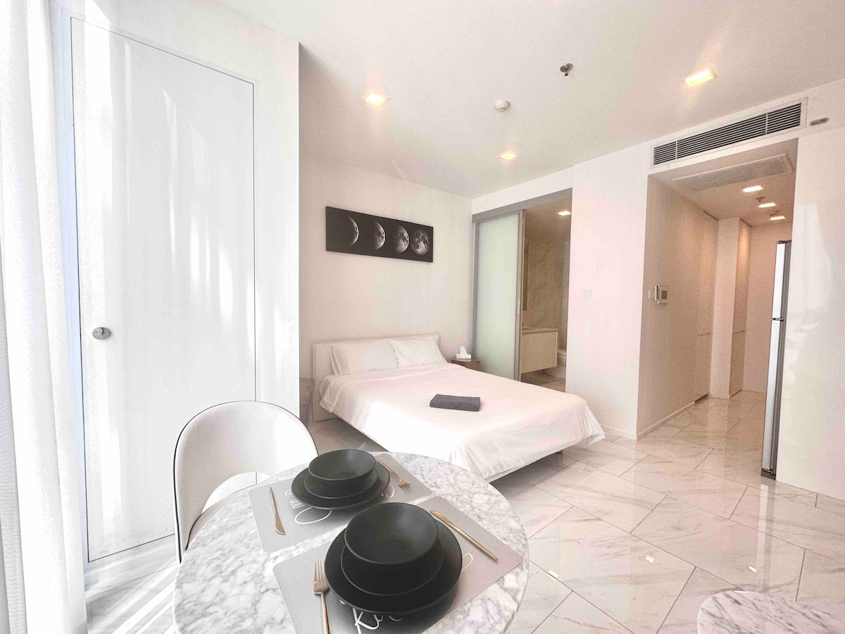 Entra en tu propio santuario en el barrio más exclusivo de Bangkok, donde el diseño moderno se encuentra con el lujo sereno. Estarás rodeado de muebles cuidadosamente seleccionados, iluminación ambiental suave y un impresionante dormitorio con paredes de piedra que te invita a relajarte con estilo. Ya sea que estés aquí para recargar energías o impresionar, este refinado refugio es tu escapada ideal, diseñado para aquellos que anhelan belleza, calma y elegancia sin esfuerzo en el corazón de la ciudad. Reserva ahora para experimentar Bangkok como nunca antes