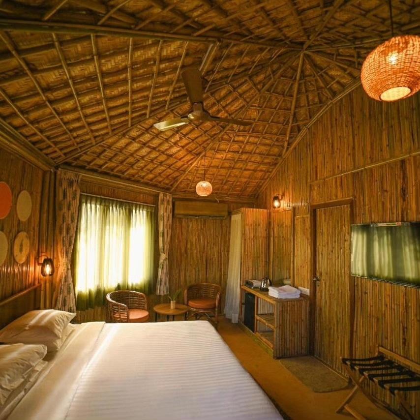Corazón de la naturaleza: cabañas de bambú dentro de la granja de dátiles más grande del mundo. Ambas casas de campo artesanales ofrecen una rara mezcla de encanto rústico y lujo natural. Las casas de campo ecológicas están construidas con bambú de origen local, mezclándose armoniosamente con el exuberante paisaje para un refugio tranquilo lejos del ruido de la vida moderna. Perfecto para ecoturistas, parejas o cualquier persona que anhele tranquilidad con un toque de elegancia terrenal, con una oferta de una experiencia conmovedora arraigada en la sostenibilidad y la serenidad.