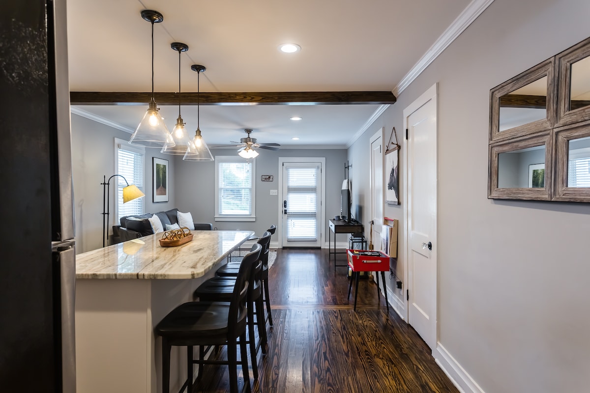 ¡Deja tu coche en casa! Ubicado en el floreciente barrio de Southside, se encuentra a pocos minutos a pie del American Tobacco Trail hasta el corazón del centro de la ciudad: DPAC, American Tobacco Campus y Five Points. Distancia a los principales lugares de interés: DPAC/American Tobacco District: 0,8 millas Universidad de Duke a 2,9 millas Hospital Duke: 3,1 millas