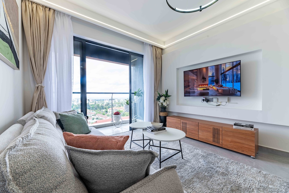 Bienvenido a The View en Riara One, donde el estilo se encuentra con la comodidad en el corazón de Nairobi. A pocos pasos de The Junction Mall, este moderno departamento ofrece fácil acceso a los mejores restaurantes, tiendas, cines y servicios esenciales. Disfruta de las vistas panorámicas del norte de la ciudad mientras te relajas en un espacio cuidadosamente diseñado. Tanto si viajas por negocios como por placer, encontrarás todo lo que necesitas, desde una cocina totalmente equipada, una piscina climatizada hasta seguridad de primer nivel para disfrutar de una estadía cómoda y sin problemas.