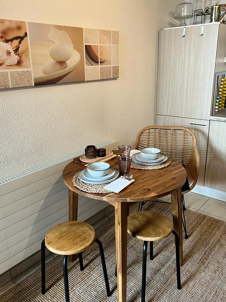Habitación con terraza amplia. Cocina: cocina totalmente equipada con lavavajillas, placa de cocción, microondas, horno y cafetera. Las bebidas se proporcionan de forma gratuita. -Sala de estar: sofá cama. Wifi gratuito, gran Smart TV -Cuarto de baño: espacioso inodoro con ducha y espejo grande. -Iluminación: iluminación LED ambiental La habitación te ofrece la combinación perfecta de confort y relajación con un estilo propio. Ideal para parejas (+ niño), personas que viajan solas o viajeros de negocios