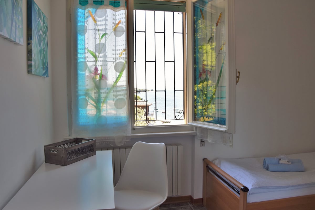 Casa Letizia se encuentra en una posición dominante con respecto al lago. El apartamento consta de salón con cocina americana, dormitorio de matrimonio y baño con ventana. Desde las dos amplias terrazas se puede disfrutar de una espléndida vista del lago y del monte Baldo y los olivares de los alrededores. El apartamento dispone de un aparcamiento privado cubierto. Desde Casa Letizia se puede llegar fácilmente al lago y a varios senderos.