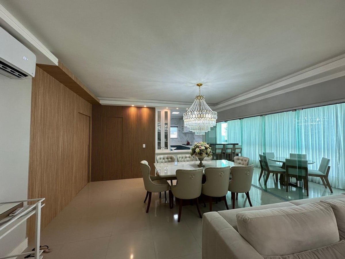 NUEVO APARTAMENTO Lleva a toda la familia a la playa y alójate con un montón de espacio para divertirse y relajarse. ¡Hay 3 suites y un entorno ampliado con salas de estar, cocina y un gran balcón con barbacoa! Cocina totalmente equipada. Todas las habitaciones tienen aire acondicionado. El Ap tiene 3 espacios de estacionamiento disponibles. Ubicado cerca de tiendas, supermercado, farmacias, restaurantes y por supuesto la playa... a 400 metros del mar, camina tranquilamente. Ya tiene un kit de playa disponible.