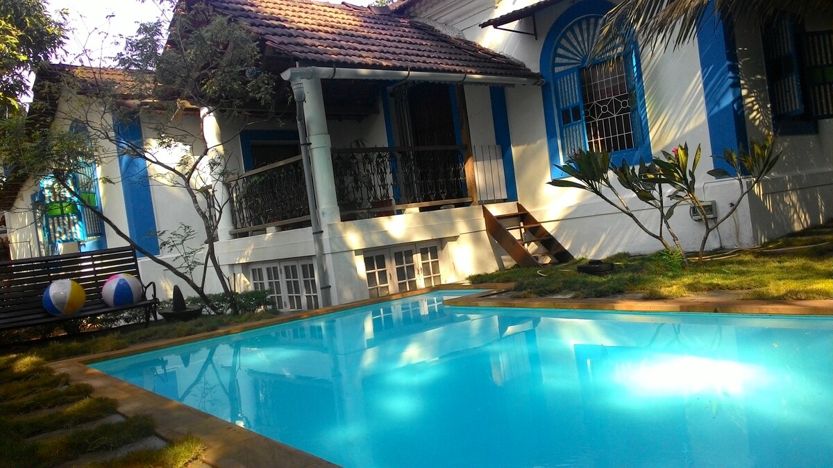 Relájate; desconecta; barbacoa; fiesta en la piscina; Esta hermosa casa portuguesa restaurada de 123 años de antigüedad ofrece una verdadera sensación de campo de Goa lejos de las multitudes locas, el ruido y la contaminación de los cinturones de playa. Una estancia para refrescar tu mente y cuerpo. Una escapada de tu vida en la ciudad de BZ. Una preciosa piscina de piedra natural y aire puro y oxigenado. No hay edificios ni otras villas con vistas a tu piscina, como en las zonas comerciales de Goa. TOTAL PRIVACIDAD EN LA PISCINA.