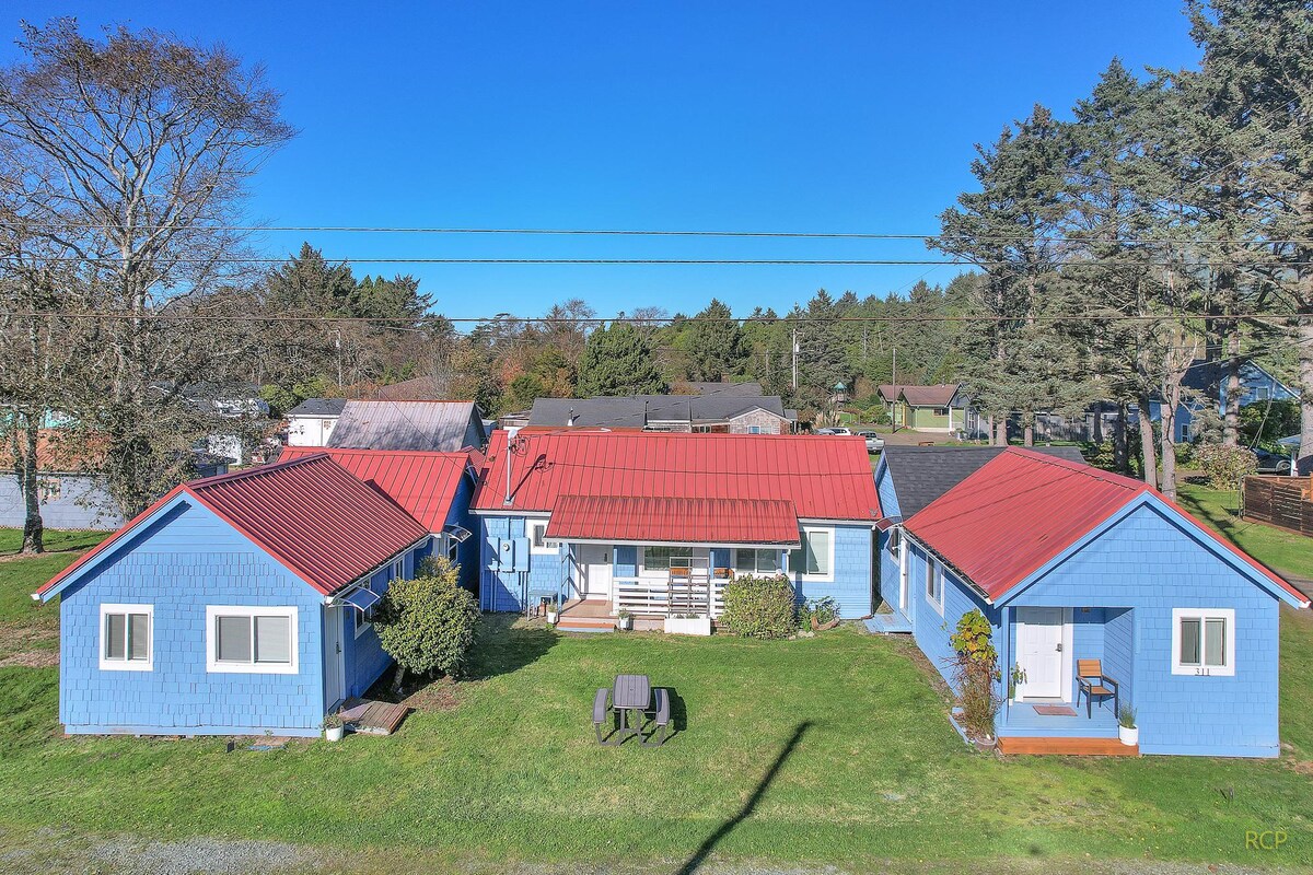 Bienvenido a Camp Adagio, un lugar para hacer una pausa y estar rodeado de la belleza natural de la costa de Oregón. Nuestra casa de campo en la playa es perfecta como una escapada romántica o unas vacaciones en familia. Hay un dormitorio privado, área de reunión familiar con una acogedora estufa de leña y una cocina de cocina con una mesa de granja. El espacio compartido de arriba tiene una cama tamaño queen a un lado con un lanai y dos juegos de literas para niños o amigos al otro. Disfruta de la sala de estar exterior en el extenso patio delantero.