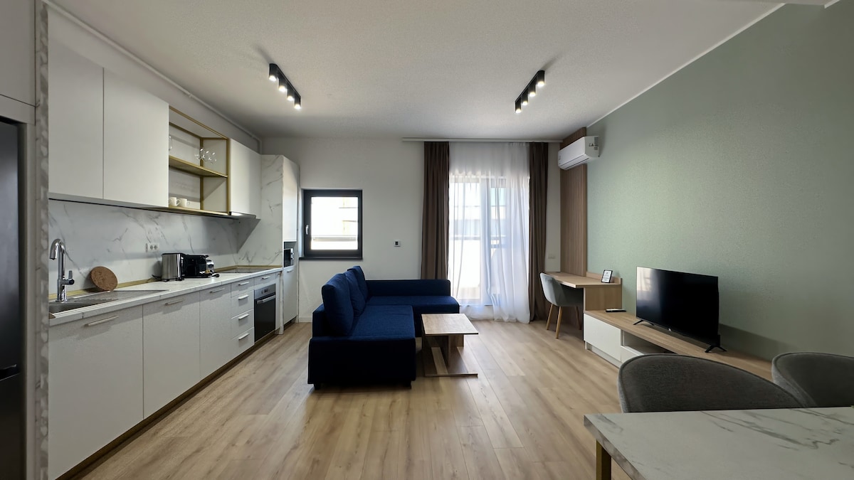 El departamento está en una zona céntrica, en un nuevo complejo residencial a 1,3 km de Piata Unirii. Un paseo fácil de 10 minutos te llevará allí, siendo el lugar perfecto para tomar un té, un café o un Aperol a las muchas terrazas. Uno de los lugares de compras más populares de la ciudad, Iulius Mall, está a 1,2 km y se puede llegar después de un corto paseo. El lugar de estacionamiento en el garaje subterráneo está incluido para que puedas disfrutar plenamente de tu estancia o sedación prolongada.