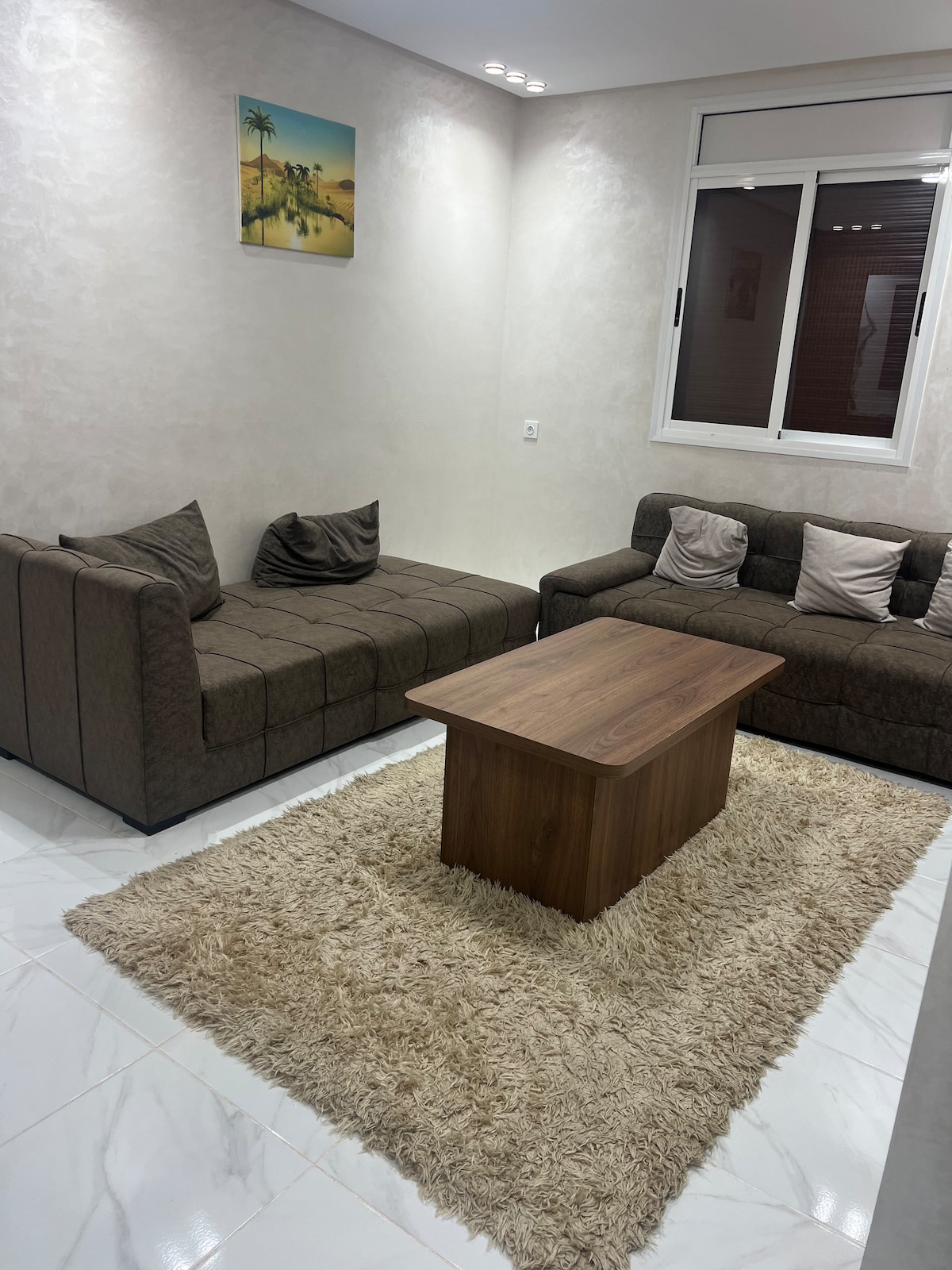 Acogedor apartamento en Nador Jadid, junto al Restaurante Novoclass y a 5 minutos del paseo marítimo. Ideal para familias, puede alojar hasta 4 personas con 2 sofás cama y colchones. Aire acondicionado y calefacción para mayor comodidad durante todo el año, con impresionantes vistas – ¡la mejor de Nador! Cerca de restaurantes y parques infantiles, disfrute de una estancia agradable en pleno centro de la ciudad. ¡No dude en ponerse en contacto conmigo!