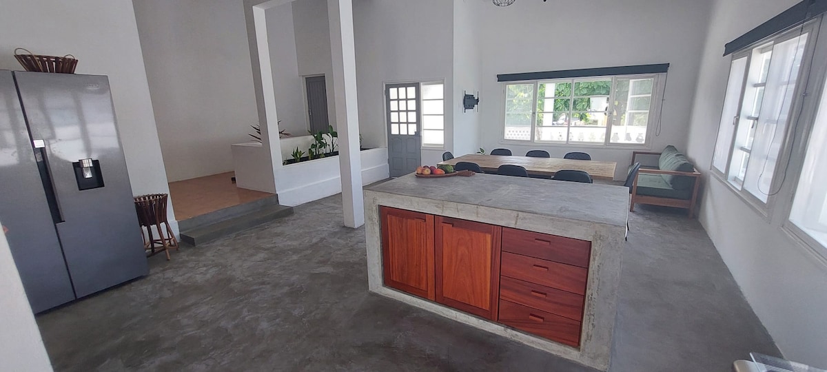 Casa frente a la playa a 30 m del cálido y cristalino océano Índico. Palmeras y playas de arena blanca que se extienden a ambos lados para formar la península de Barra Reef. Reconocido por el esnórquel, el buceo y el avistamiento de ballenas. Igualmente adecuada para una luna de miel o vacaciones familiares inolvidables, la casa independiente totalmente equipada ofrece el destino ideal durante todo el año. Elegante y con capacidad para 6 adultos y 2 niños y es atendido diariamente por nuestro personal amable y competente. No querrás marcharte.