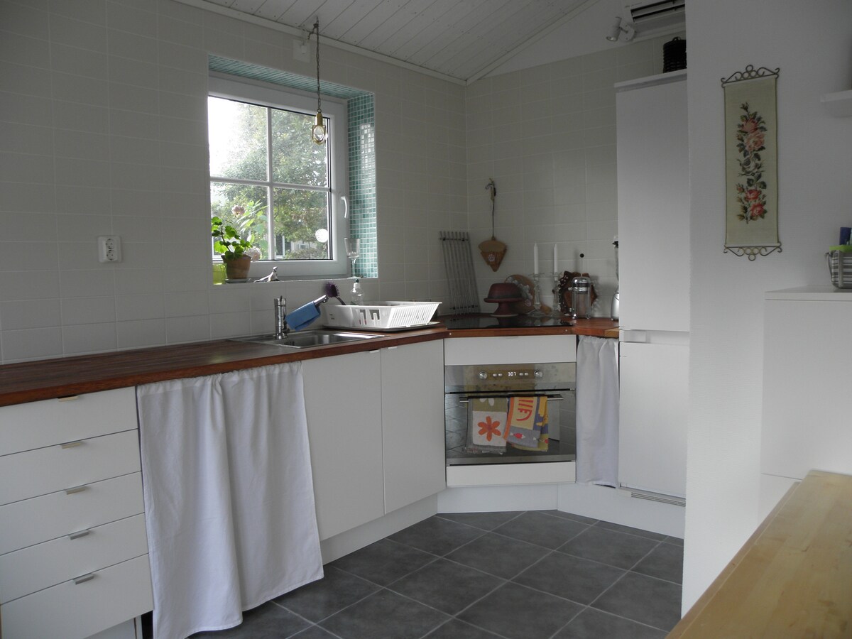Acogedora casita con terraza y vistas al mar. A 300 m de la playa de arena con embarcadero de baño. A 400 m del puerto con conexión de ferry a la hermosa Härön. Cocina pequeña con utensilios de cocina y nevera. Inodoro y ducha separados en el sótano con entrada privada en la casa de la familia anfitriona junto a la casa de huéspedes. Fácil de llegar, incluso sin coche./Gemütliches Gästehaus mit Terrasse u. Meerblick. 300 m vom Strand, 400 m zur Fähre nach Härön. Kitchenette mit Kühlschrank. Toilette und Dusche im Keller mit separatem Eingang neben dem Gästehaus.