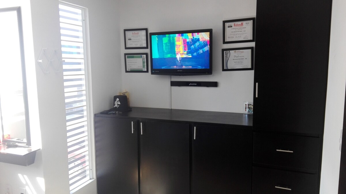 Disfruta de la sencillez de este alojamiento tranquilo y céntrico. Con la mejor decoración en el centro de Toluca. Junto a la Alameda Central. Y a dos cuadras del centro de Toluca. A 4 cuadras del estadio Nemesio Diez “Bombonera” Dentro del edificio contamos con una plaza comercial donde encontrarás, restaurantes, cine, café, gimnasio Smart Fit, y muchas más amenidades
