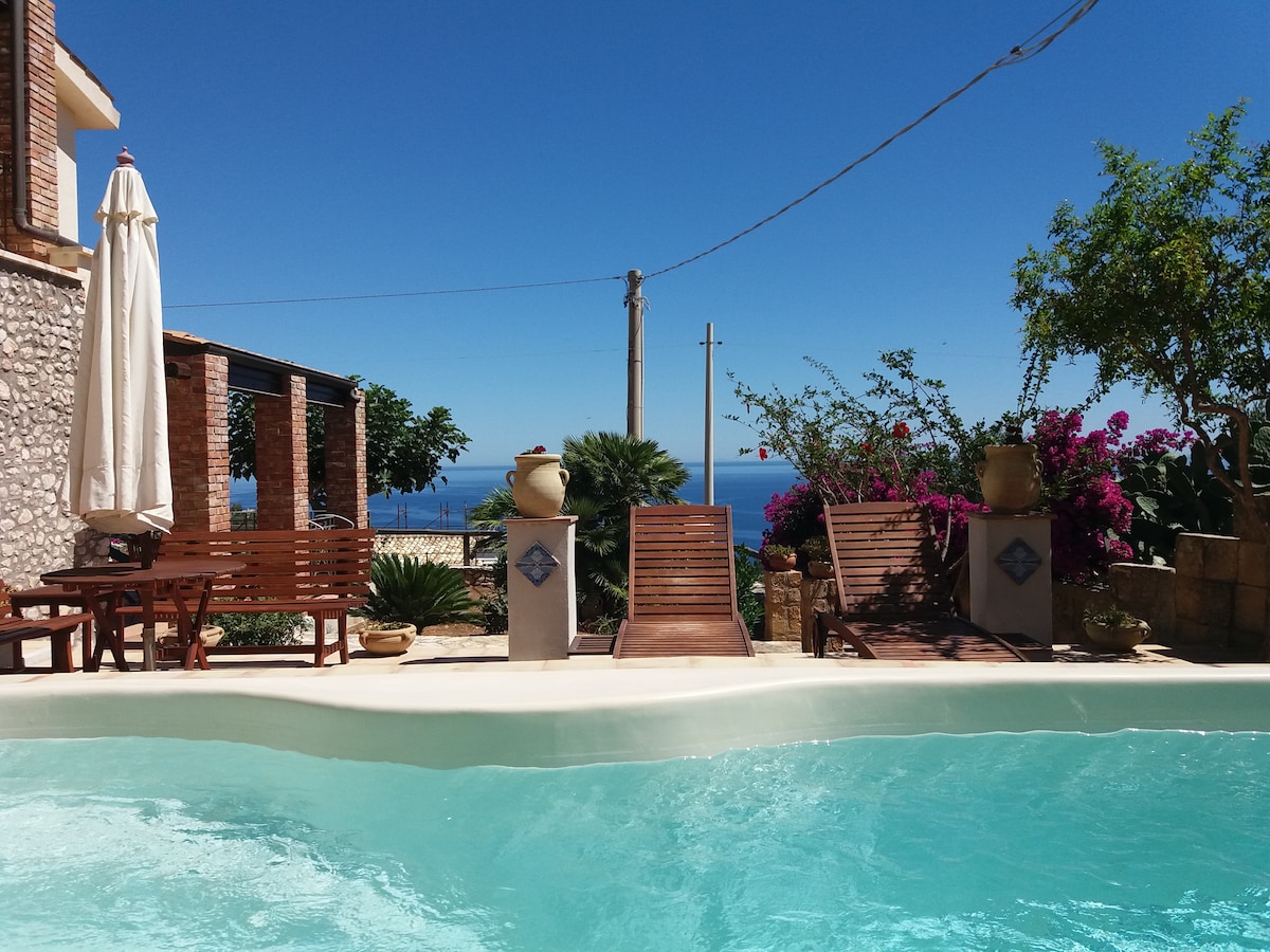 La villa se encuentra a solo 3 km de Castellammare del Golfo y consta de tres dormitorios, dos baños con bañera y ducha y un lavadero, un gran comedor, una cocina y una piscina climatizada muy grande y hermosa con hidromasaje. La piscina, con una hermosa vista al mar, siempre está abierta, pero se calienta de MARZO A NOVIEMBRE. Funciona muy bien cuando la temperatura exterior es superior a 15 grados.