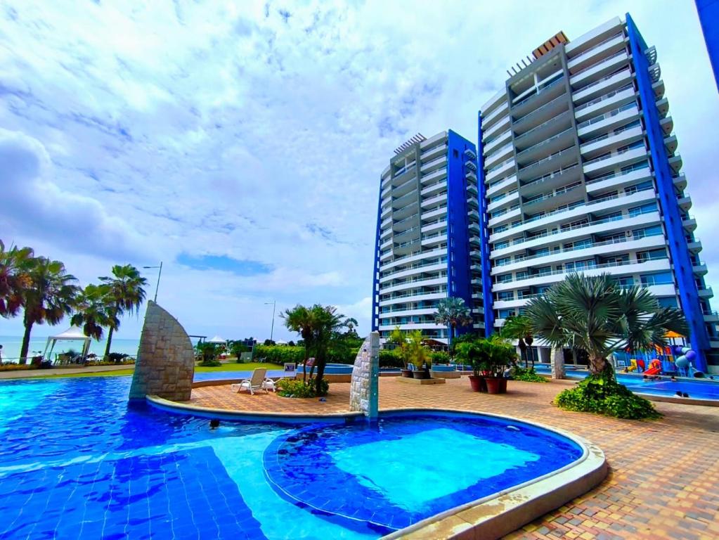 apartamento con vista al mar y acceso directo a la playa. Jacuzzi privado en el balcón, Wi-Fi de alta velocidad, acceso seguro con guardia de seguridad. Tendrá dos habitaciones, dos baños, y cinco camas disponibles, ideal para 6 personas,se dispone de lavadora en el apartamento y agua caliente. El complejo ofrece gimnasio, piscinas, sauna, turco, restaurante/bar, club de baile, piscina con juegos infantiles, cancha de fútbol ,tennis y Golfito LEER INSTRUCCIONES PARA EL INGRESO AL DEPARTAMENTO