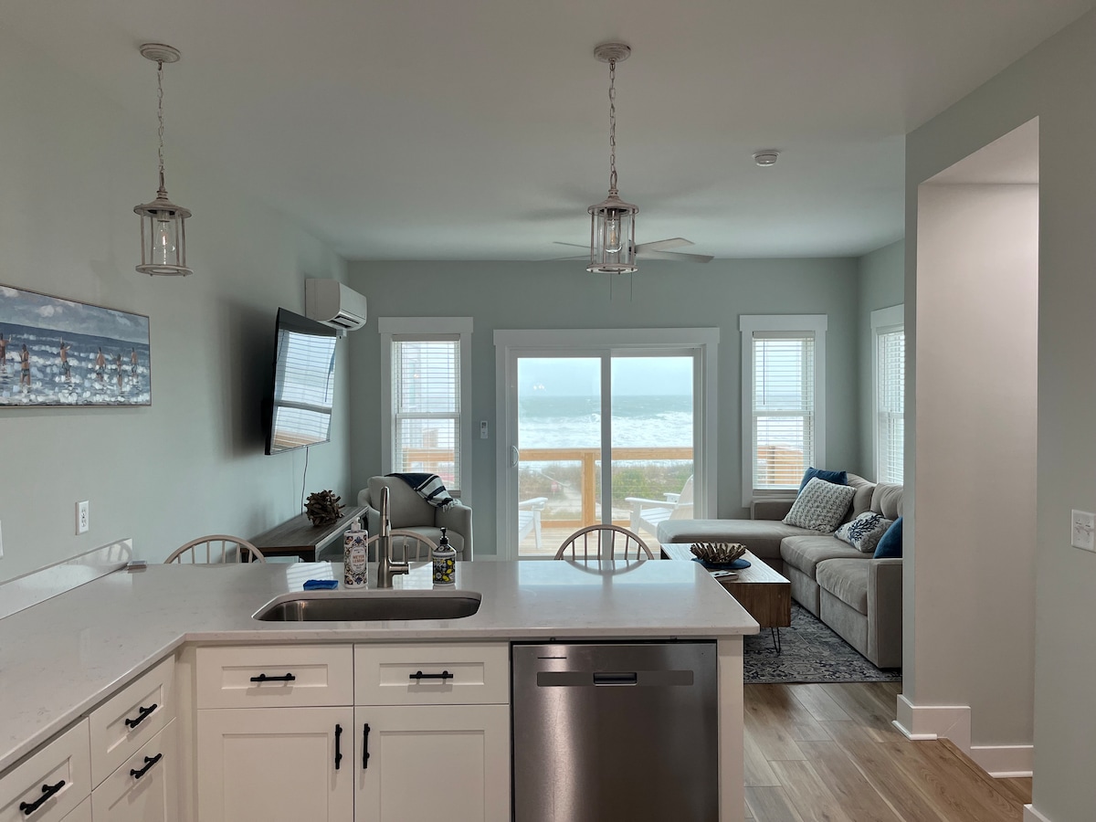 3bd, 2,5 baños. INCREÍBLES vistas de la costa. ¡Piscina comunitaria (abierta AHORA) y el océano está al otro lado de la calle! Cargador para vehículos eléctricos de nivel 2 incluido. Golden Tee arcade, futbolín 3 en 1, hockey, billar arriba. Gran conecta-4 en la cochera. Muelle donde puedes pescar, kayak (incluido), tabla de paddle (incluida). Tabla de surf de espuma de 9 pies para montar olas. Planta abierta arriba con cocina actualizada que tiene granito y todas las necesidades. Cama tamaño king, queen y literas con 4 televisores de pantalla plana.