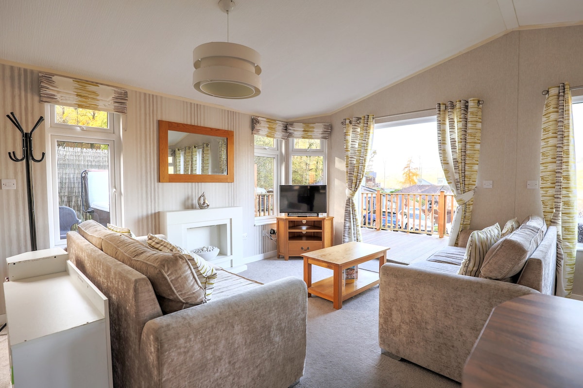 Casa rodante estática de 2 dormitorios en Waterside Holiday Park, con capacidad para más de 4 personas. Dormitorios con cama tamaño king y dos camas individuales (+ sofá cama), sala de estar luminosa con TV, wifi y bien equipada. Terraza con sillas y vistas al tren de vapor Paignton-Kingswear. A 5 minutos a pie de la costa, a 15 minutos a pie de las playas de Goodrington y Broadsands. Ideal para familias jóvenes/parejas/solteros. Piscina en el lugar con jacuzzi (pequeño cargo) y bar (horario de temporada). Cerca: Zoológico de Paignton, Splashdown, Puerto Histórico, propiedades populares de NT. No se permite fumar, traer mascotas ni hacer fiestas.
