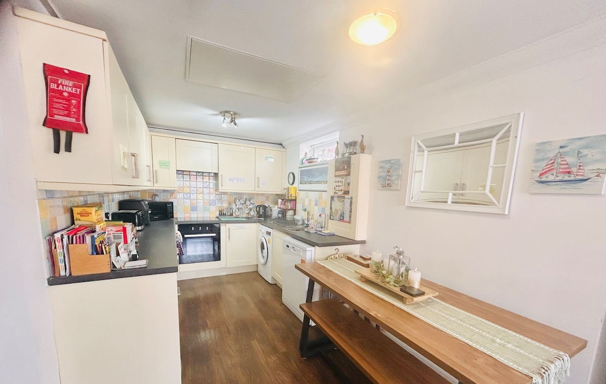 📣 Sin tarifas ocultas para el anfitrión • 🐕🦺 Las mascotas se hospedan gratis • A poca distancia a pie del zoológico de Paignton 🐊, del parque acuático 🛝 💦 y de las playas 🏖️ • Capacidad para 6 personas • Jardín privado cerrado en el patio 🌻 • Ideal para familias, grupos, parejas, contratistas a largo plazo y todas las razas de perros • Amplio salón • Cocina-comedor excelentemente equipada • 1 habitación cómoda con cama tamaño king • 1 habitación con cama doble y cama individual • Sofá cama doble • Baño • Estacionamiento privado (carga para vehículos eléctricos disponible) • Base ideal para explorar la Riviera Inglesa.