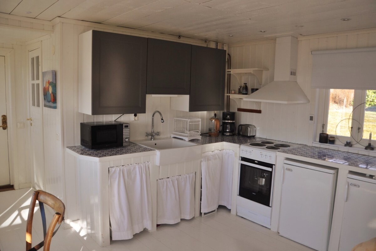 Acogedora casa de campo situada a orillas del agua con gran terraza orientada al sur. Durante los meses de verano hay un bote de remos y una canoa en tu propio embarcadero, así como parrilla de carbón y muebles de exterior. Hay wifi rápido en la cabaña que llega hasta el muelle. La cabaña tiene dos acogedores dormitorios y un loft donde puedes pasar el rato por las noches. La pequeña cocina está totalmente equipada con todo lo que puedas necesitar durante tus vacaciones, como un lavavajillas microondas, así como una nevera grande y congelador.