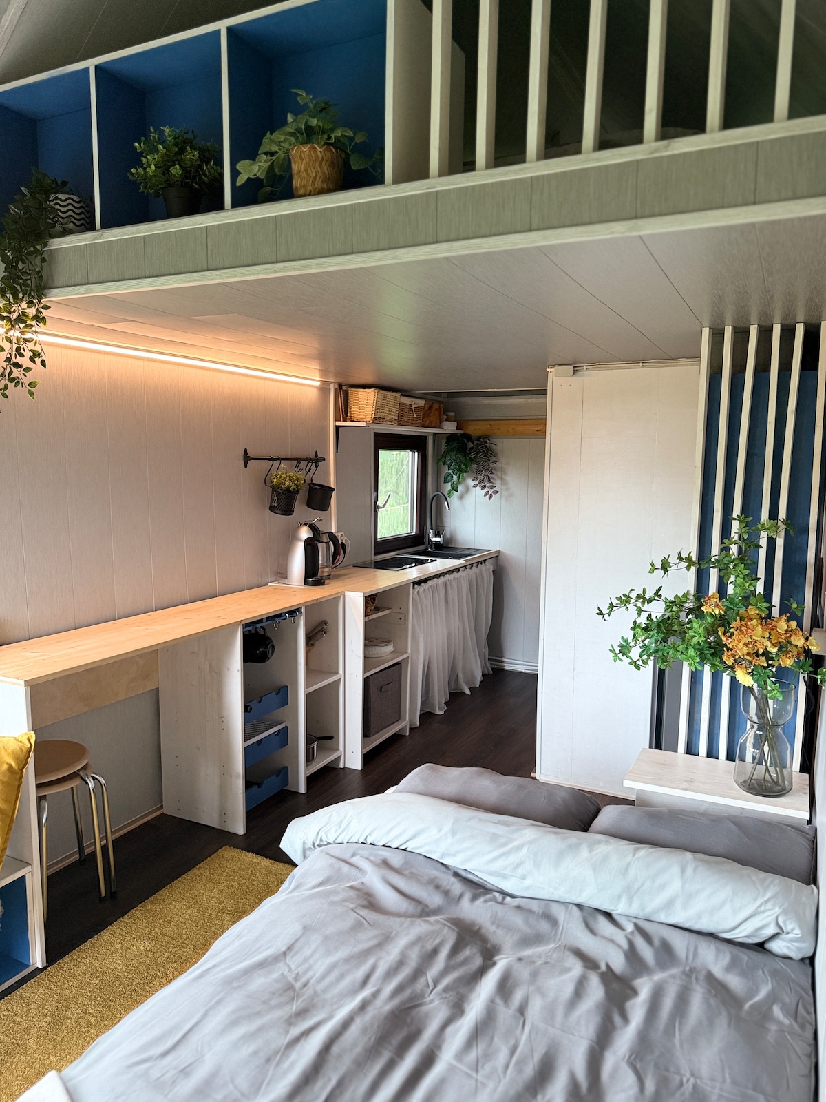 Pequeña casa de huéspedes en nuestro jardín que se adapta bien a parejas y familias pequeñas. Podemos alojar hasta 3 personas. La casa está situada en una zona tranquila y a poca distancia a pie de la playa y del centro de la ciudad. Los visitantes tienen estacionamiento gratuito y también pueden utilizar nuestro jardín. El centro de la ciudad se encuentra a 1,5 km y el inicio de la playa está a 800 m. Nosotros proporcionaremos la madera para la sauna. ¡Serás recibido por nuestros 2 corgis y 2 gatos!